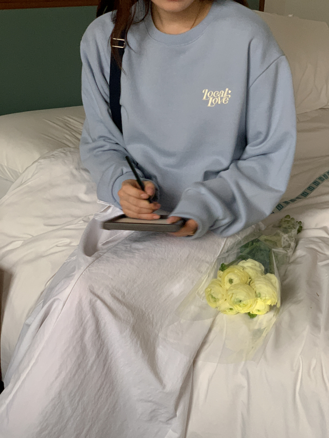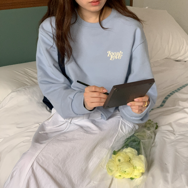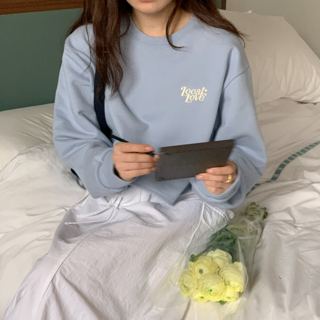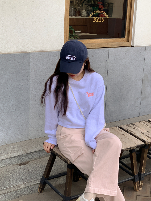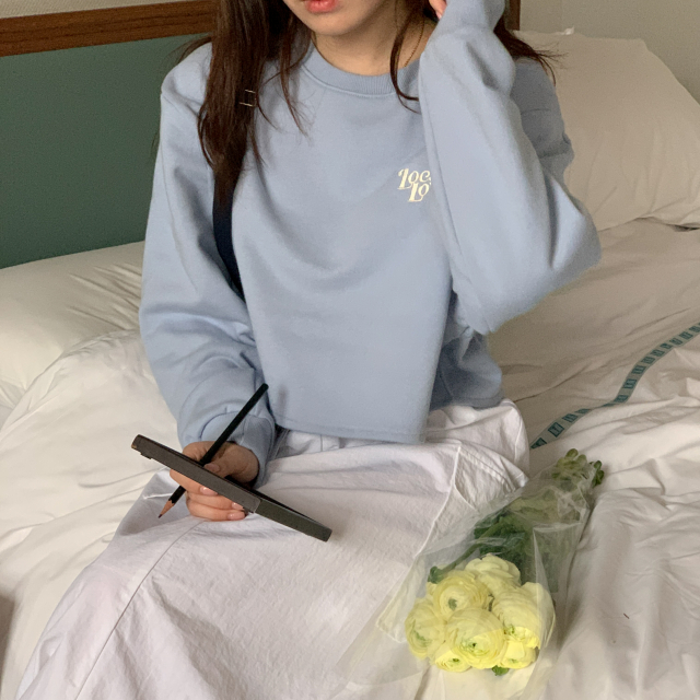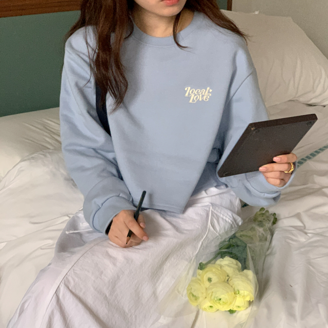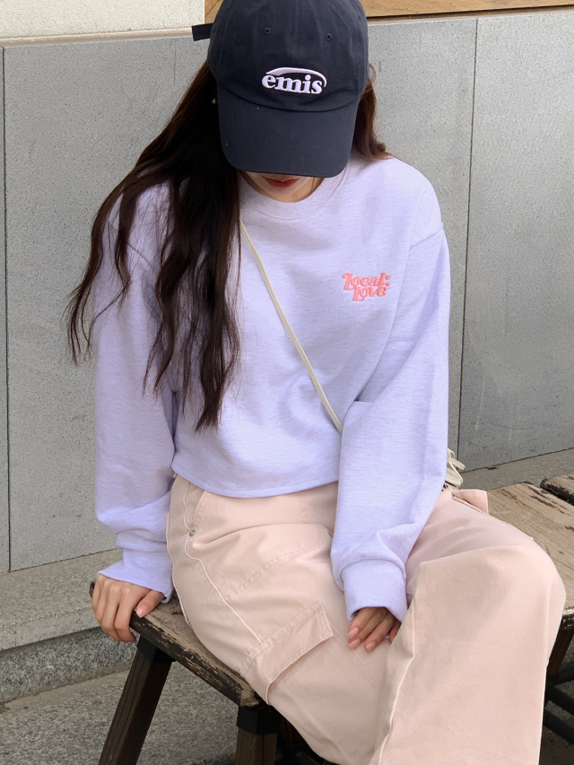 Women's/Loveクロップドステッチスウェットシャツ(2c)