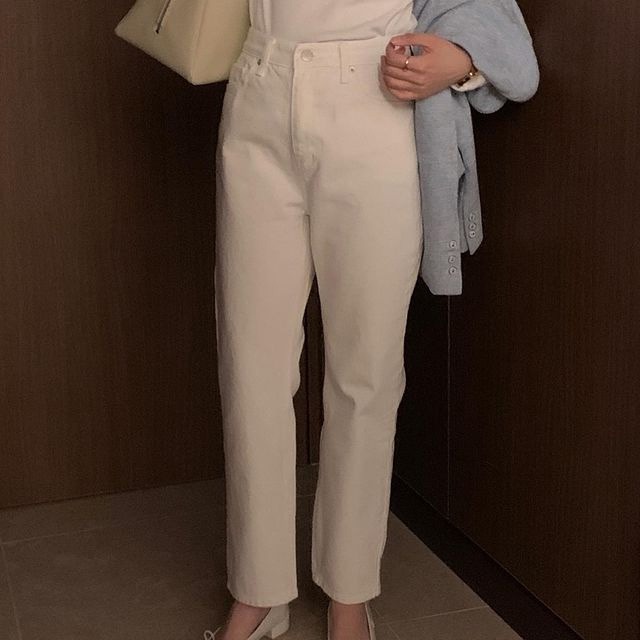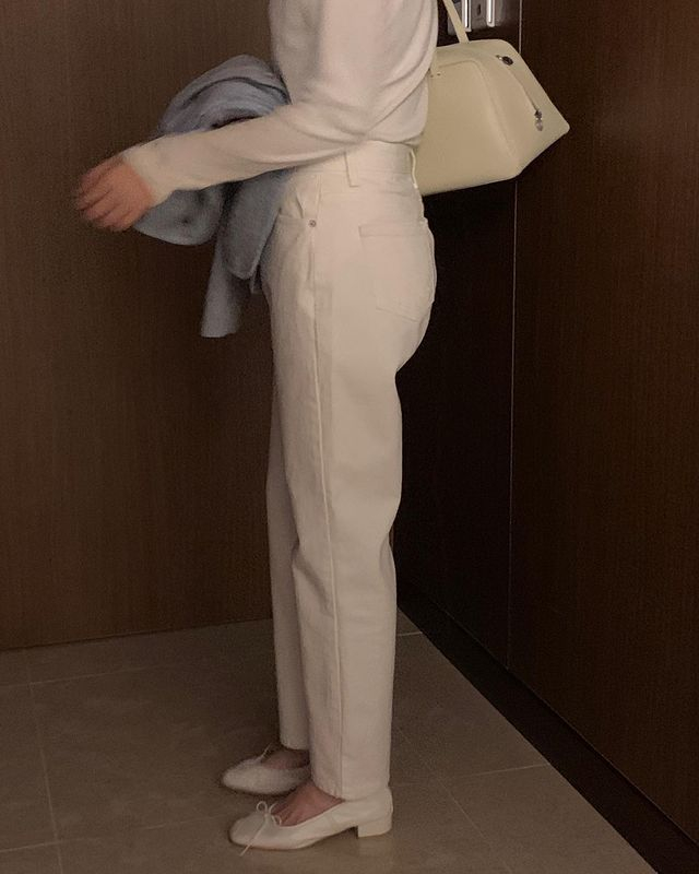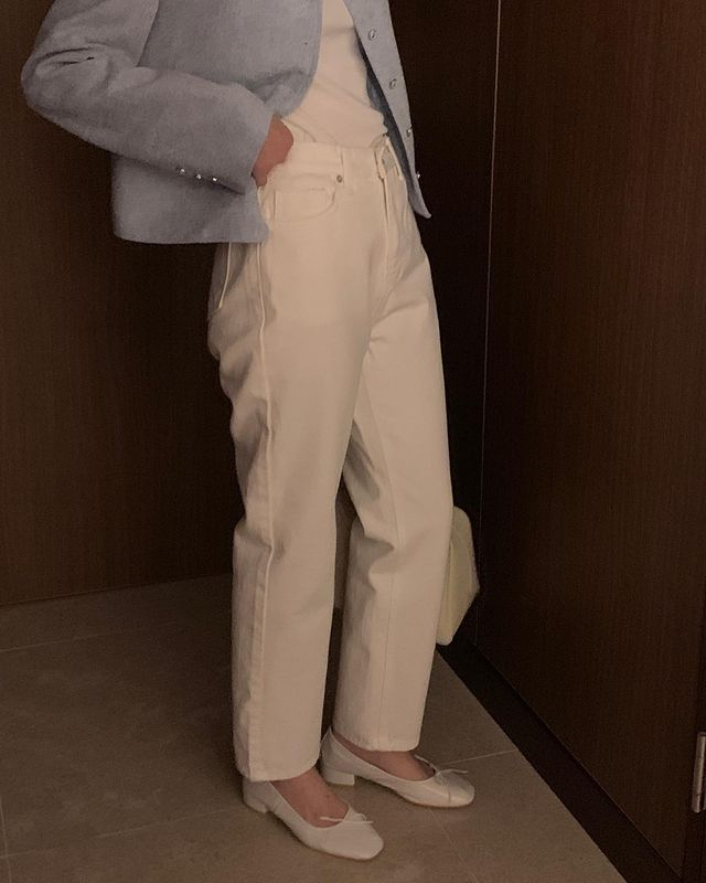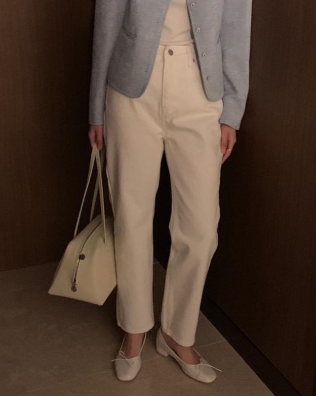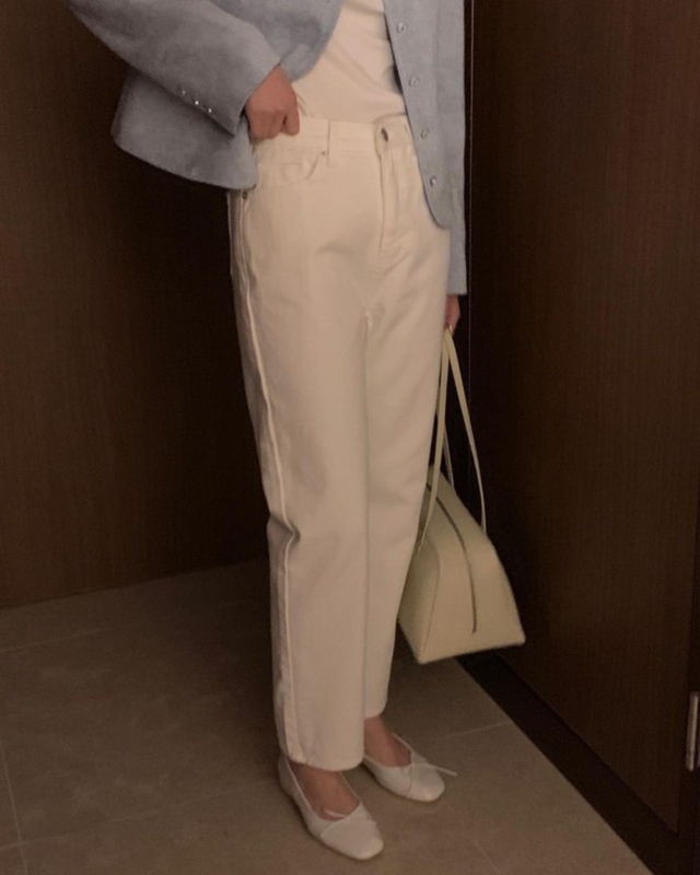 Ideaホワイトセミワイドデニムパンツ
