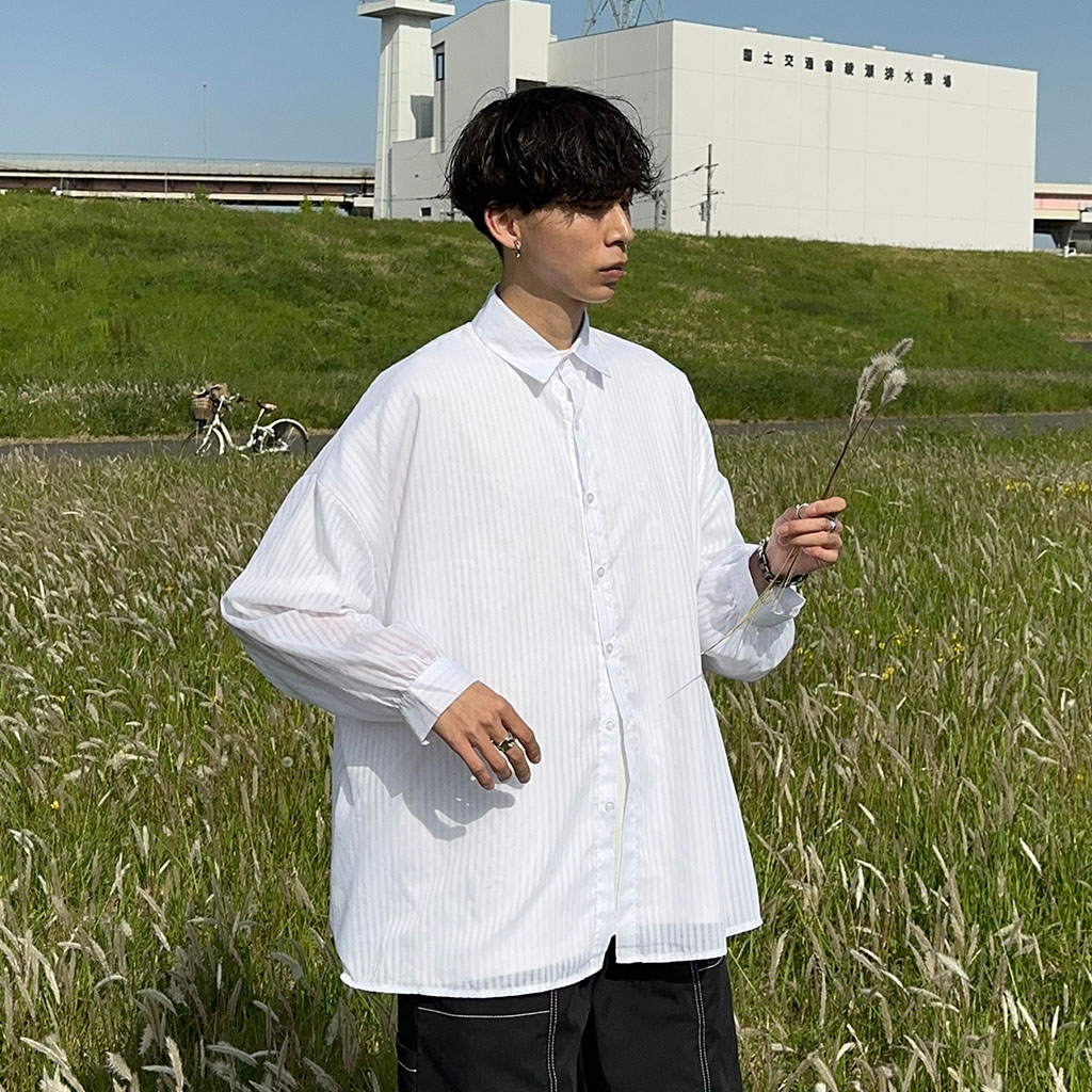 サマーボリュームストライプシャツ