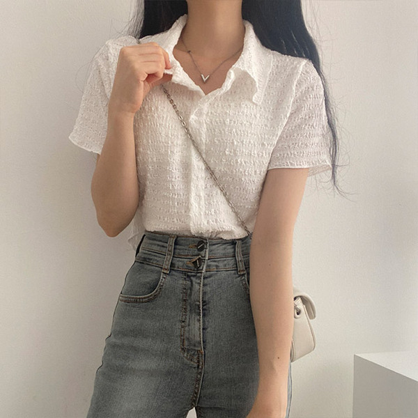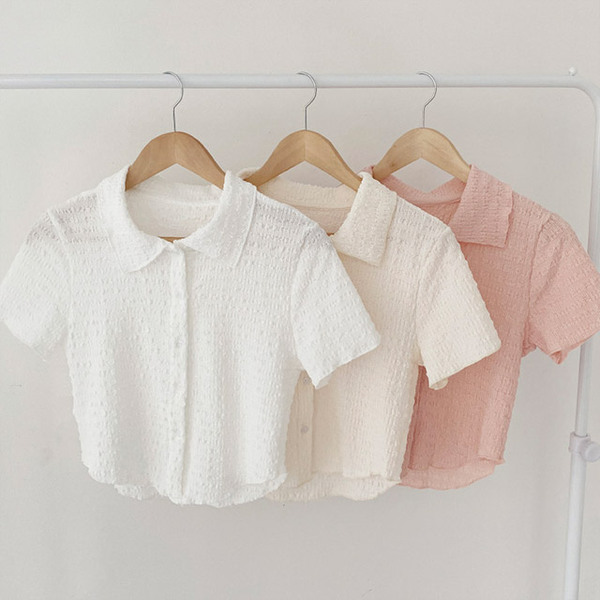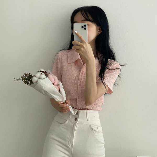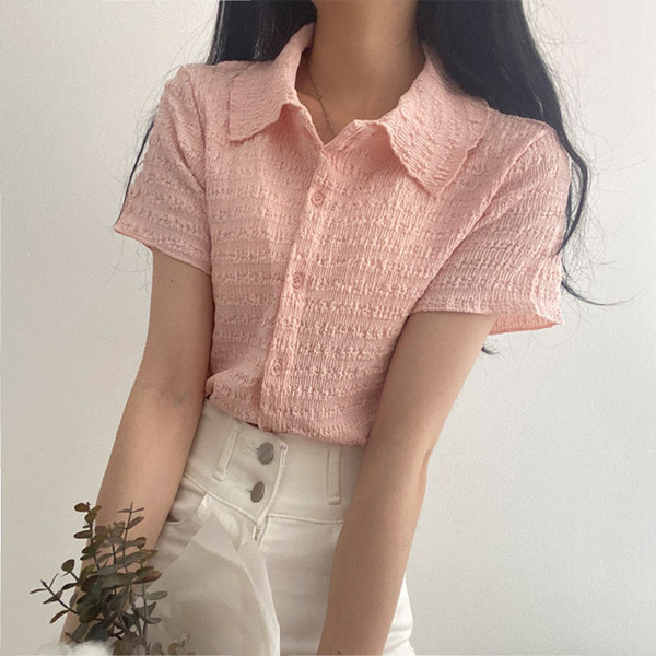 [3color]可愛さアップ~シャーリングカラーブラウス