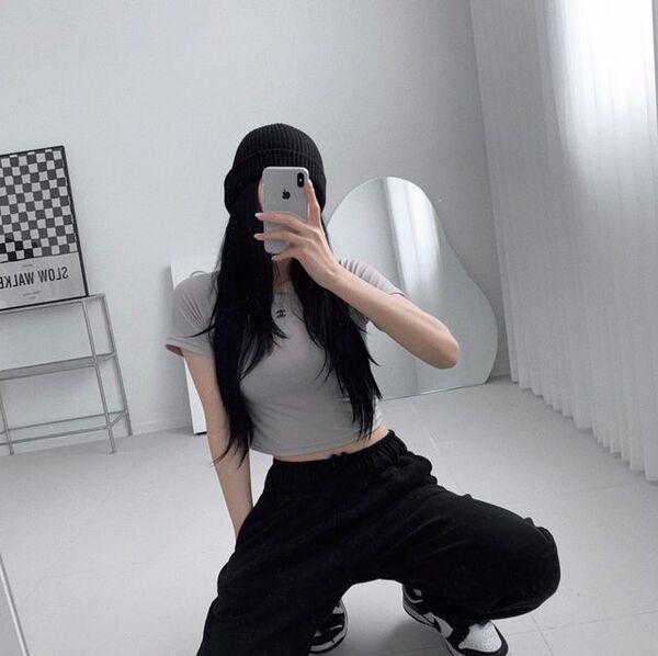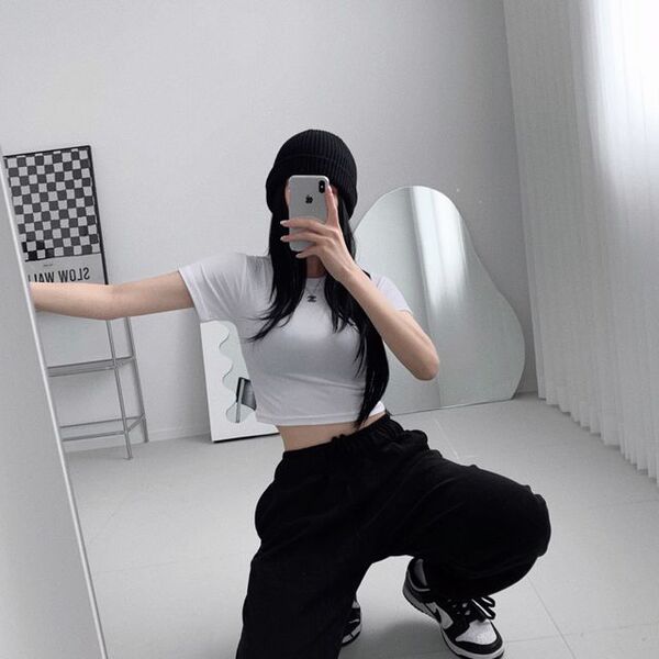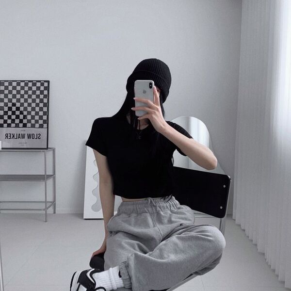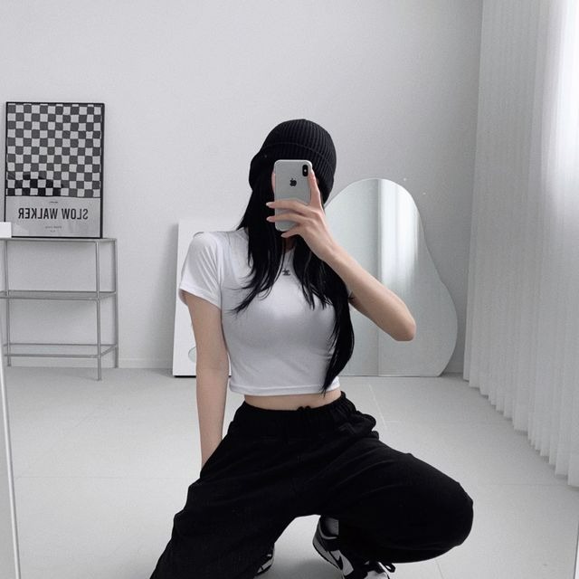 [涼しい生地/洗濯変形なし]夏向けクロップドUネック半袖Tシャツ(10 color)