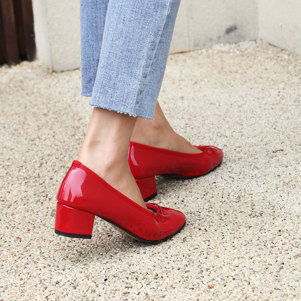 リボンエナメルミドルヒール(4.5cm)[22.0 可能]
