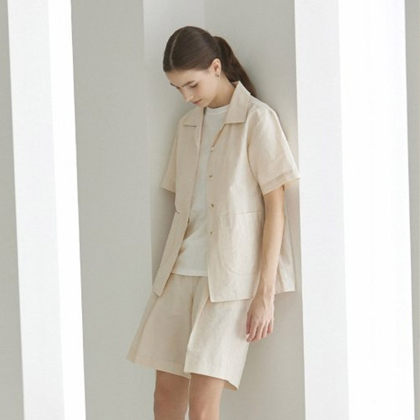 Linen Half Shirts Jacket [LIGHT BEIGE]