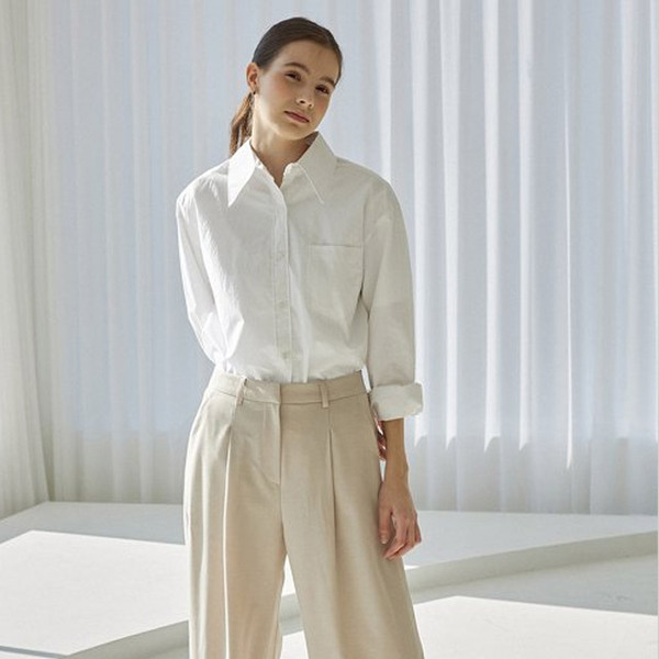 Cotton Wide Collar Semi Over Shirts [OFF WHITE]