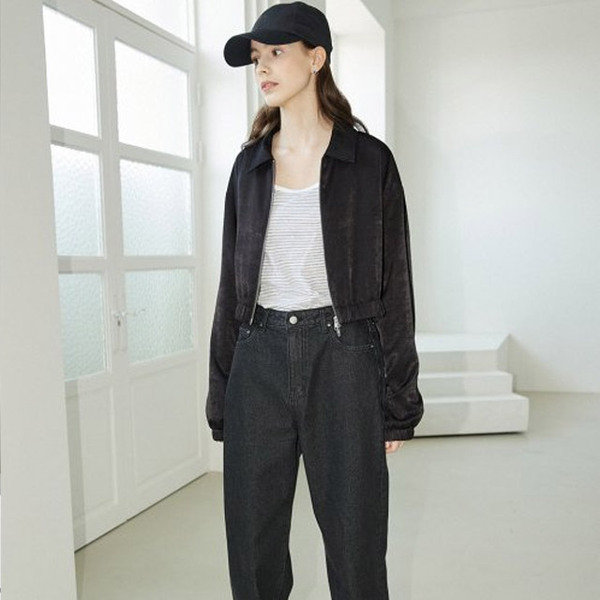 Satin Black Crop Jacket [BLACK]