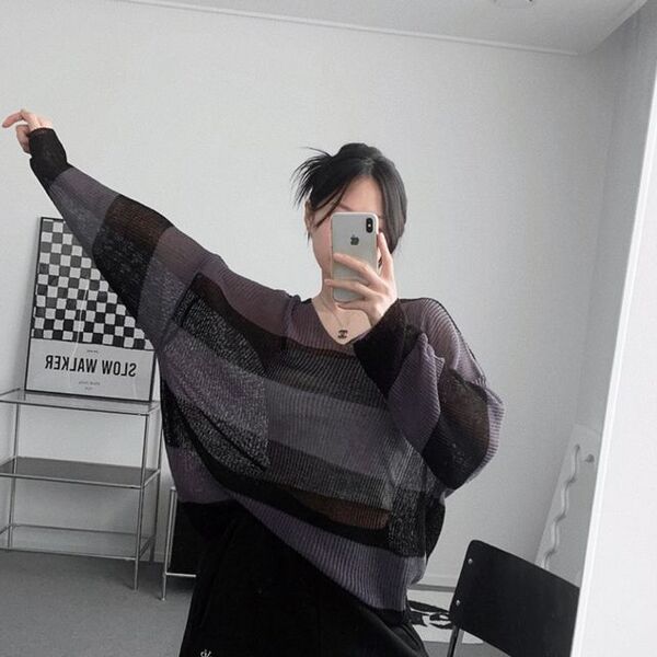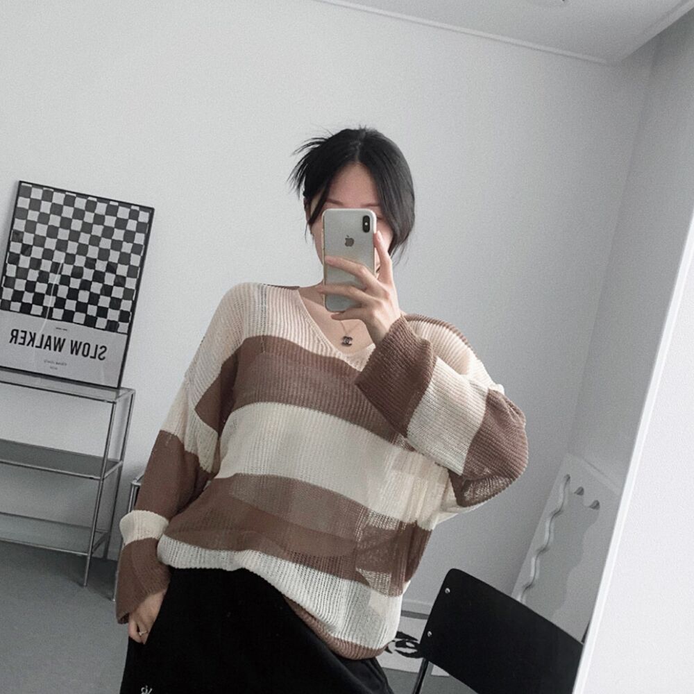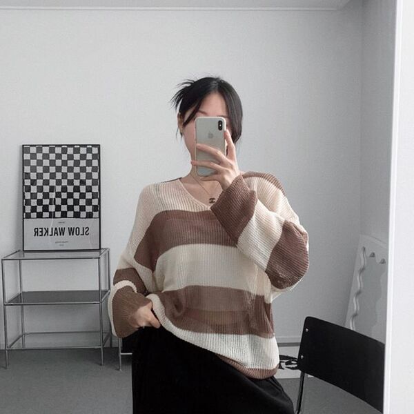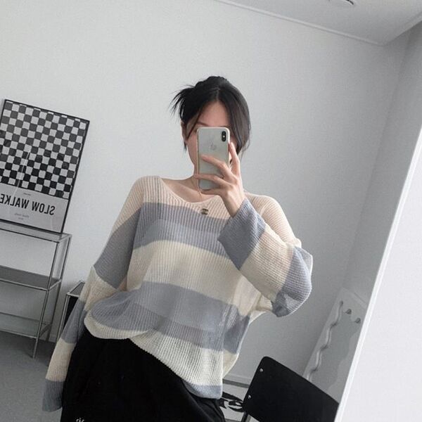 Women's/オーバーフィットストライプ配色長袖ニット (3color)