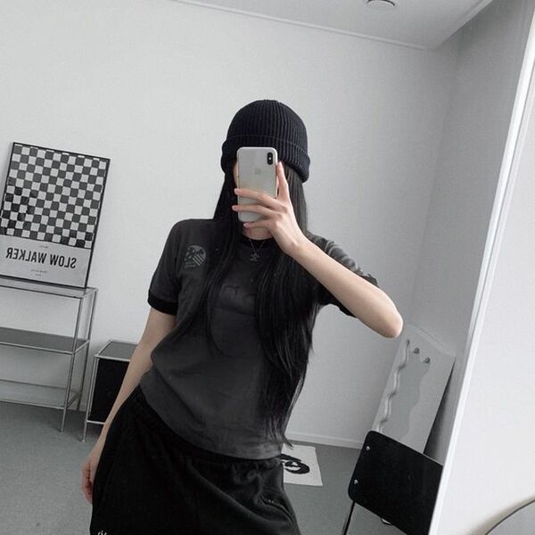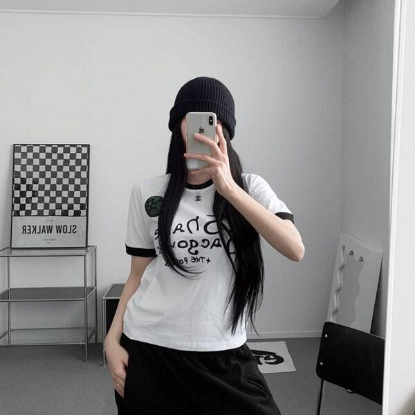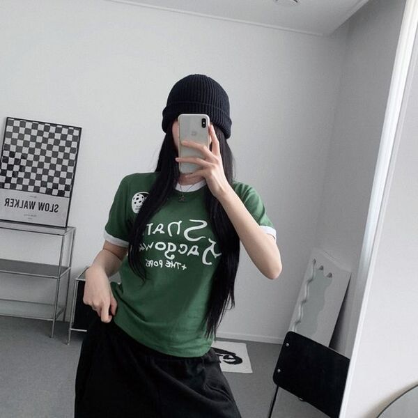 ルーズフィットプリントセミクロップド半袖 Tシャツ(3color)