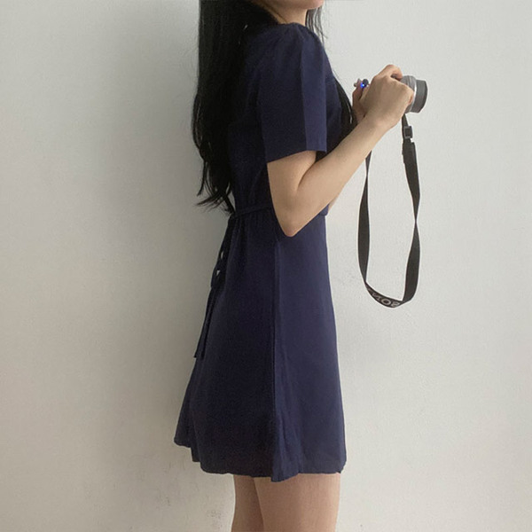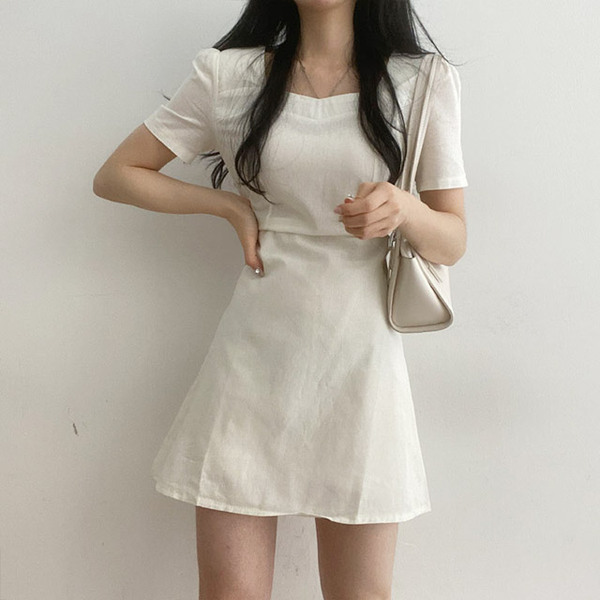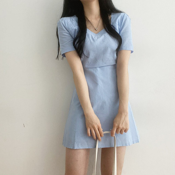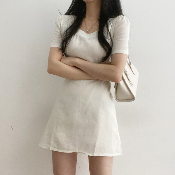 Women's/[3colors] ピュア裏リボンハートネックミニワンピース