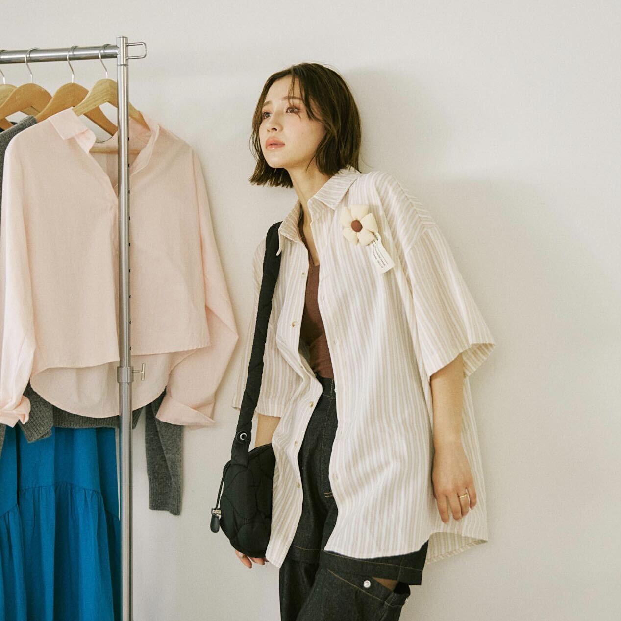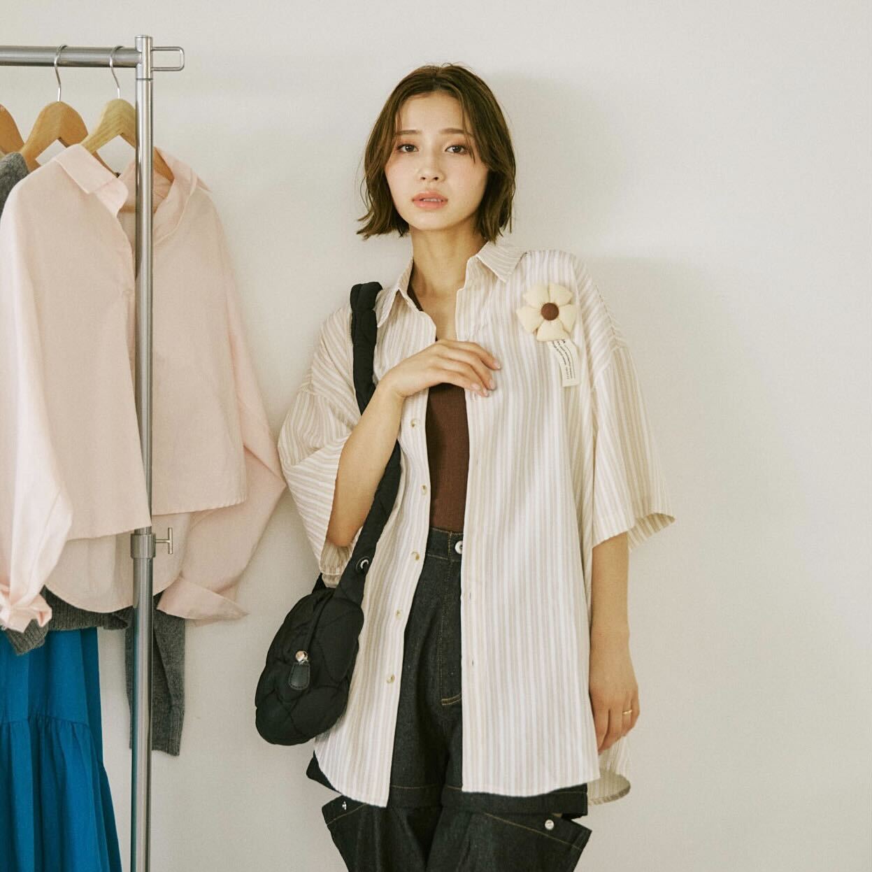 Women's/フラワーアップリケストラアイプショートスリーブシャツ