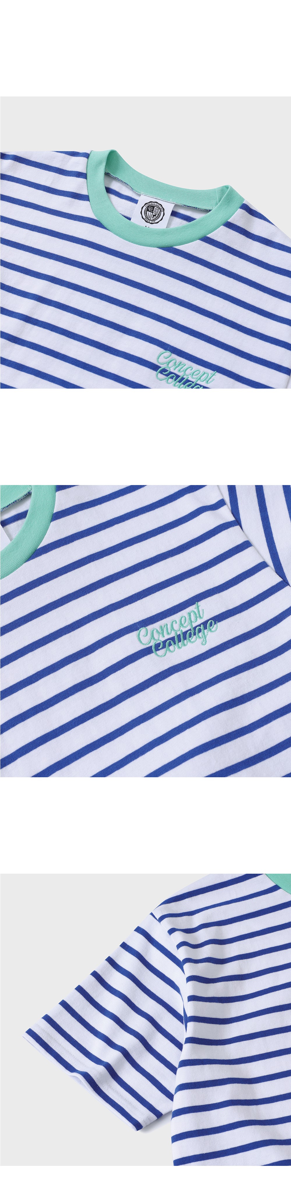 Unisex/Mint Neck Blue Stripe Unisex T-shirt