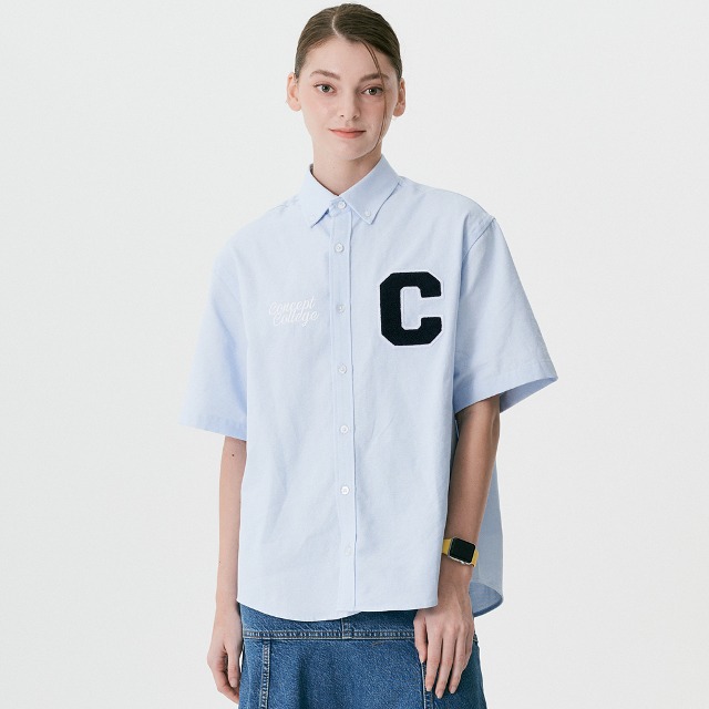 C Patch Short-Sleeved Sky blue Oxford Shirt