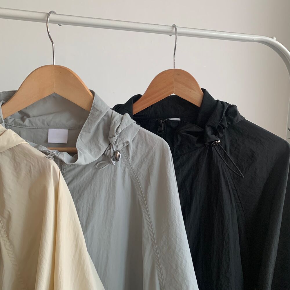ストリングルーズフィットナイロンフード付きウィンドブレーカー