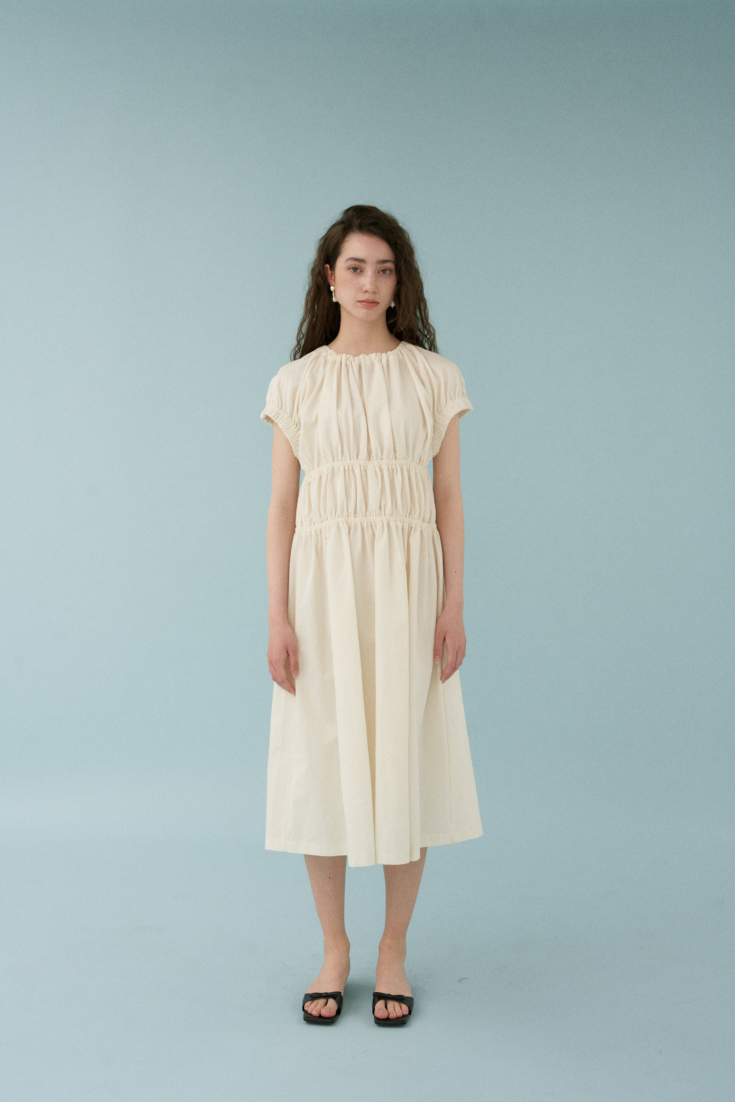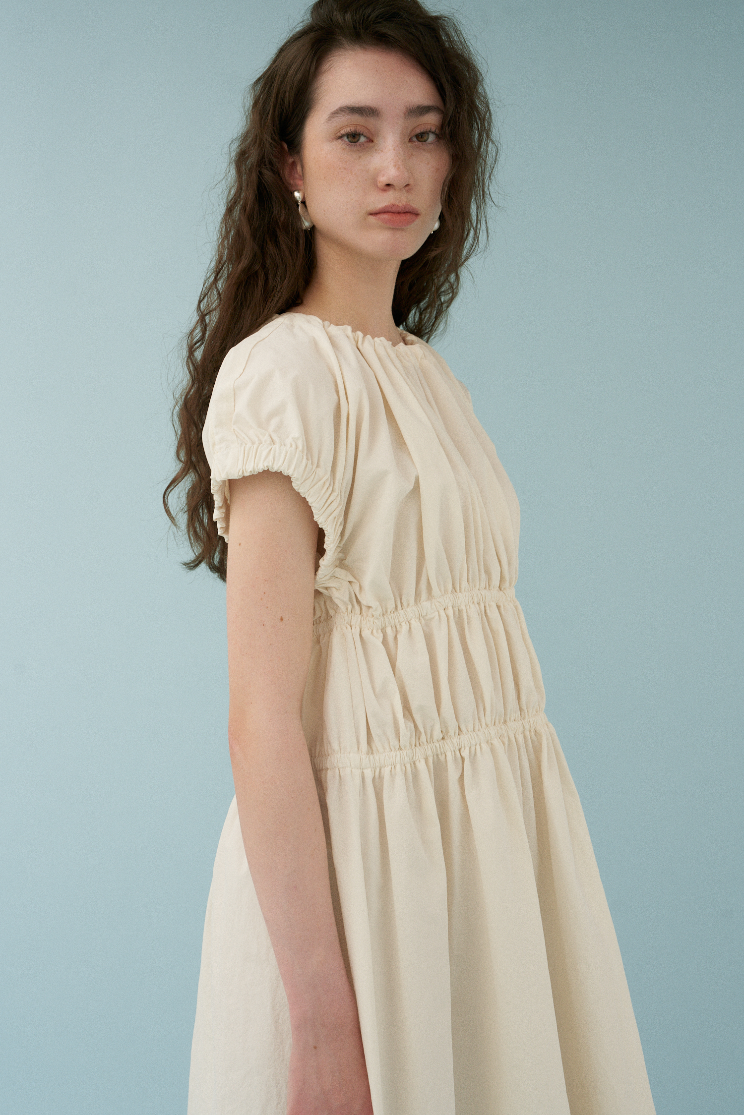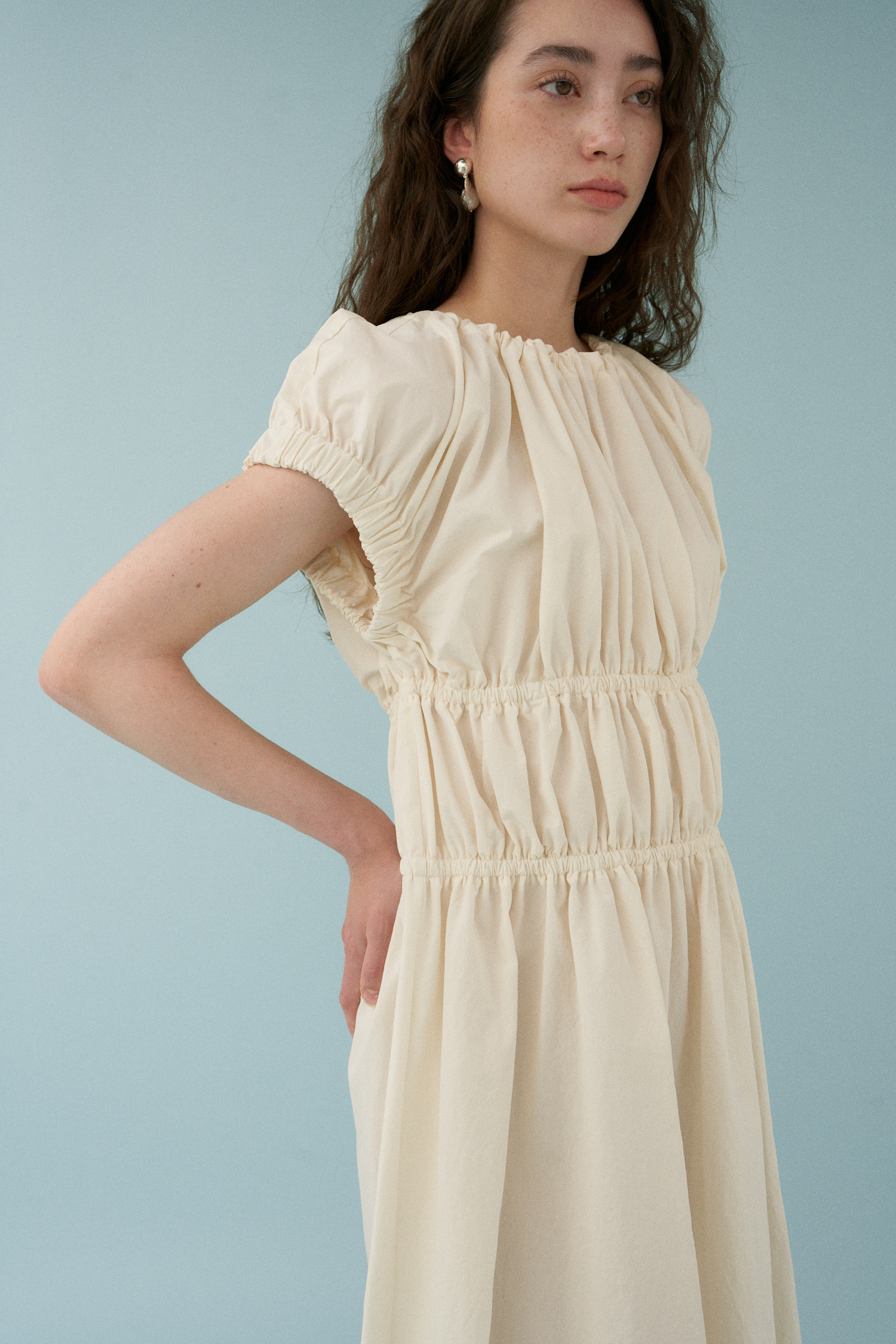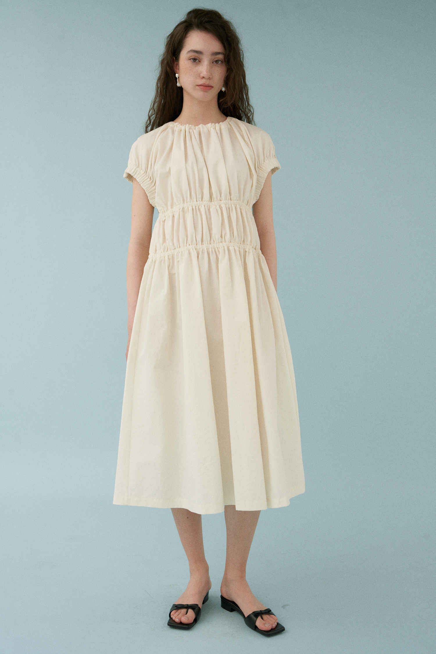 Wave Shirring Cotton Dress [アイボリー]