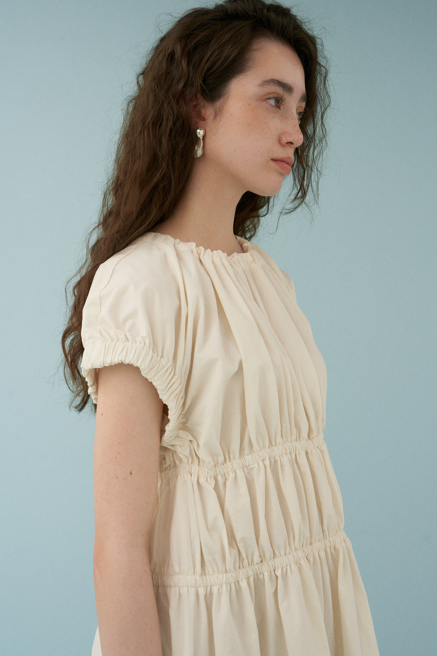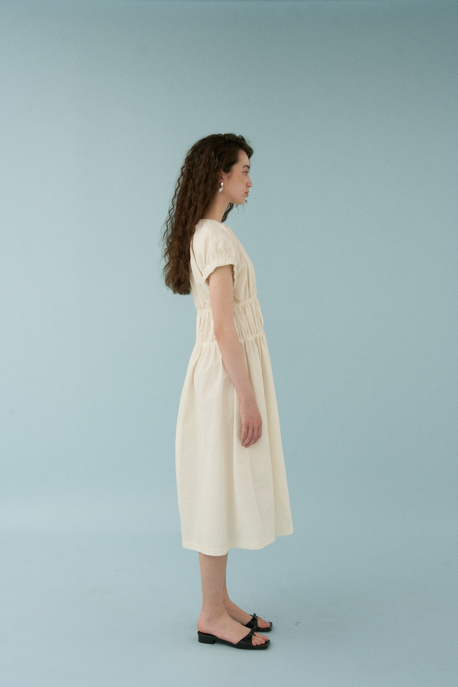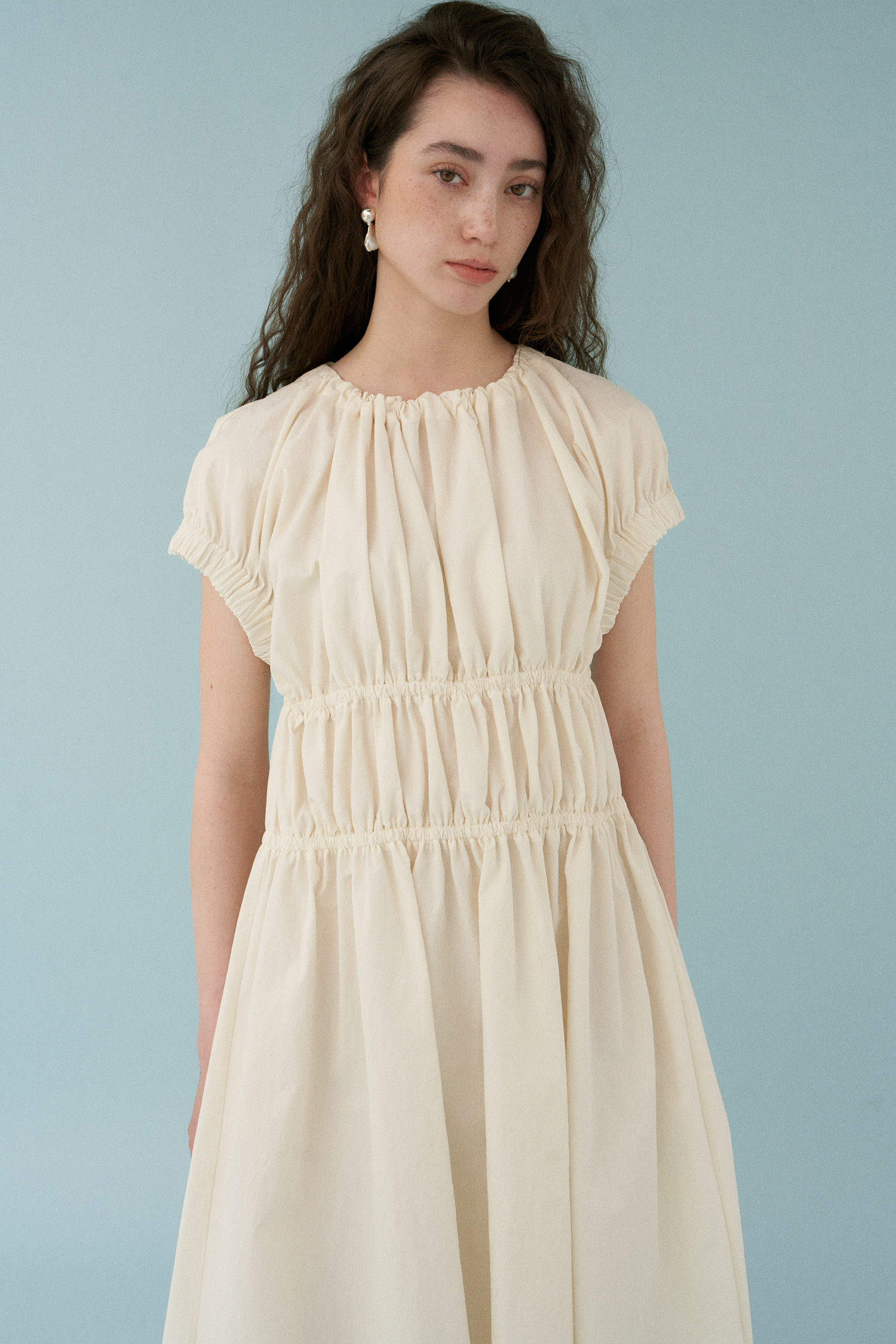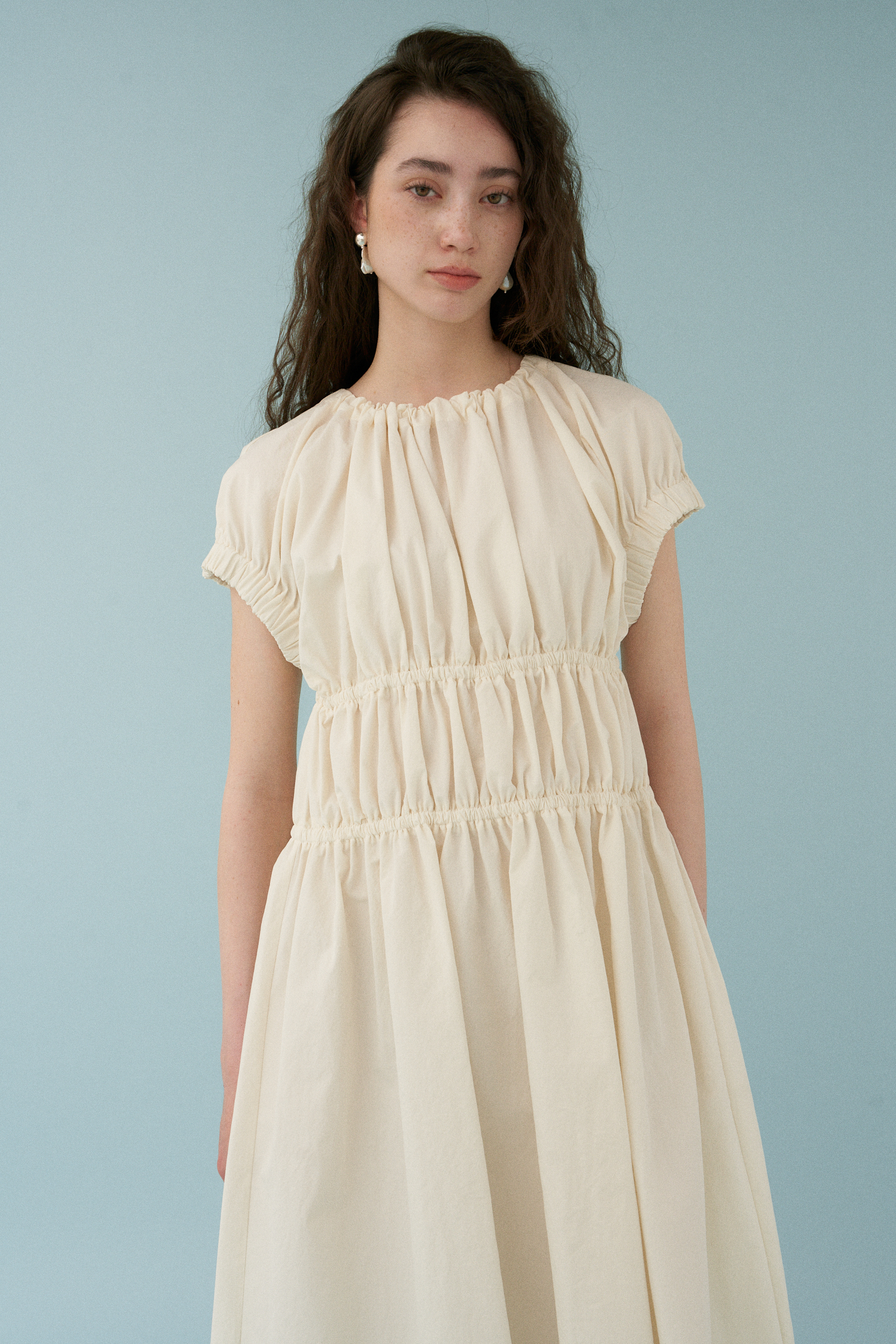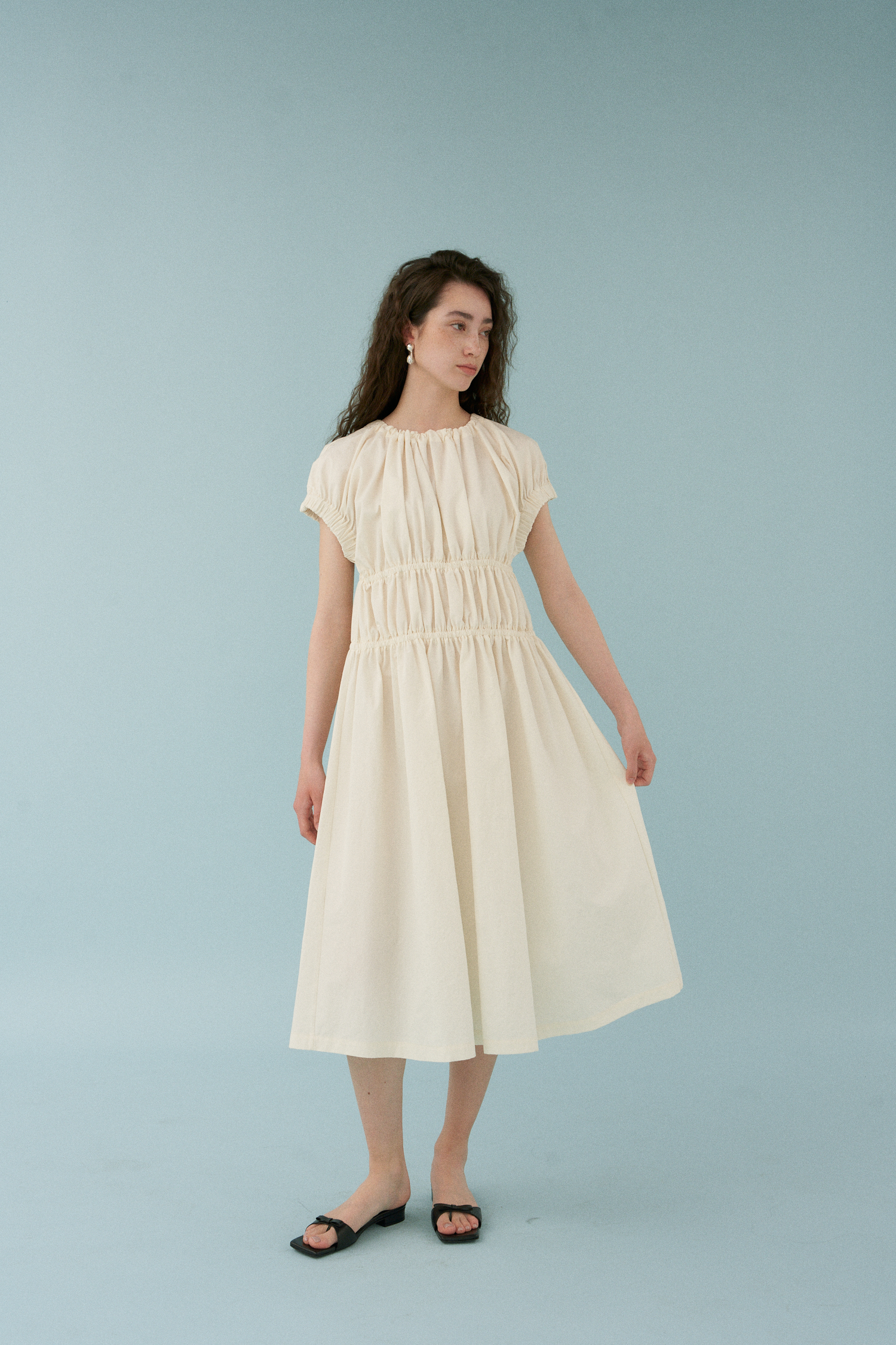 Wave Shirring Cotton Dress [アイボリー]