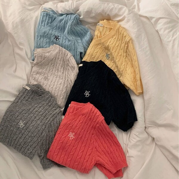(ORIGINAL) ケーブルVネック半袖ニット