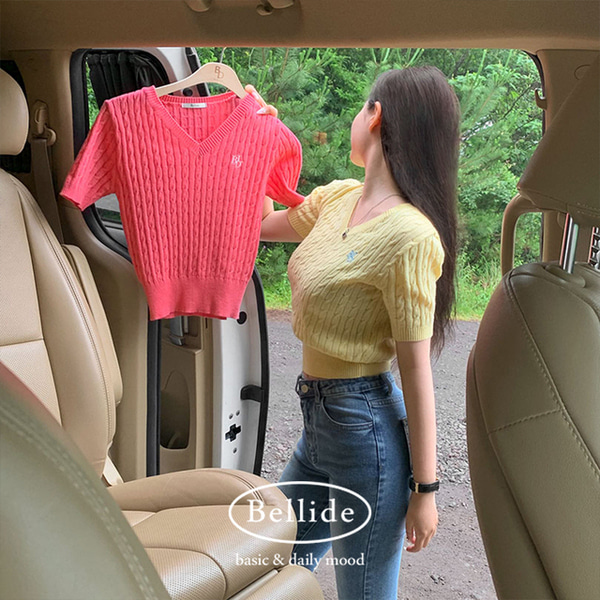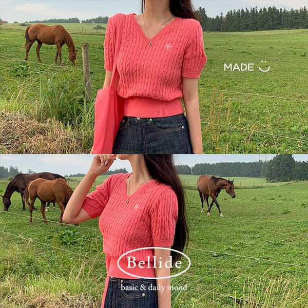 [BELLIDE MADE] ケーブルVネック半袖ニット