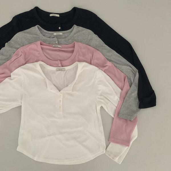 [BELLIDE MADE] ひらひら、リブオープンボタンTシャツ