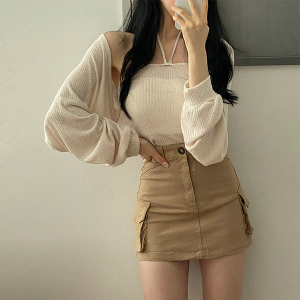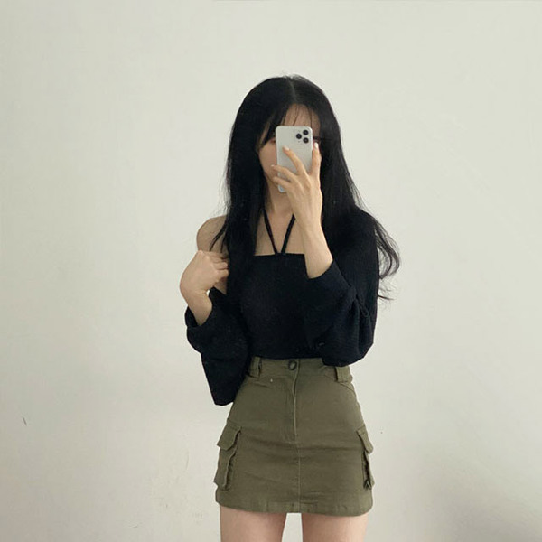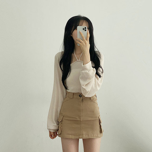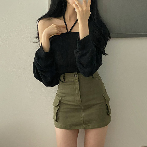 Women's/[3color] スパンカーゴポケットミニスカートパンツ