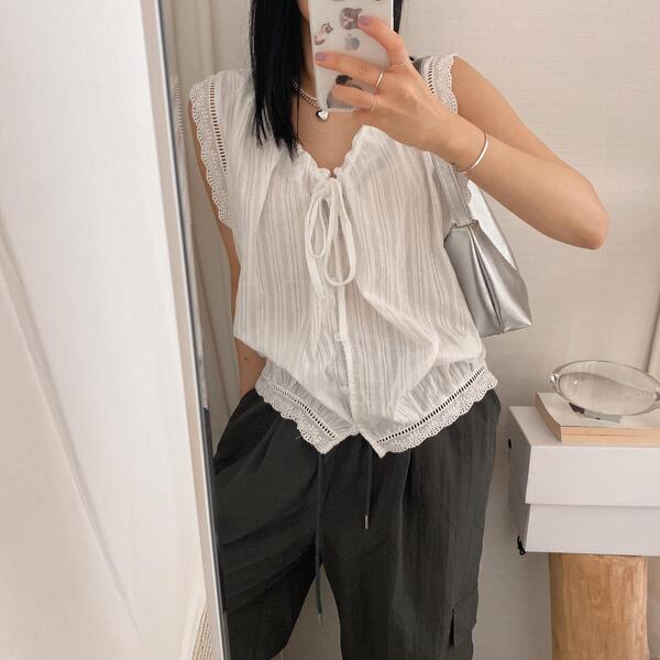 リボンレースパンチングノースリーブ