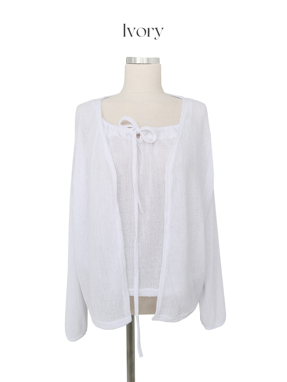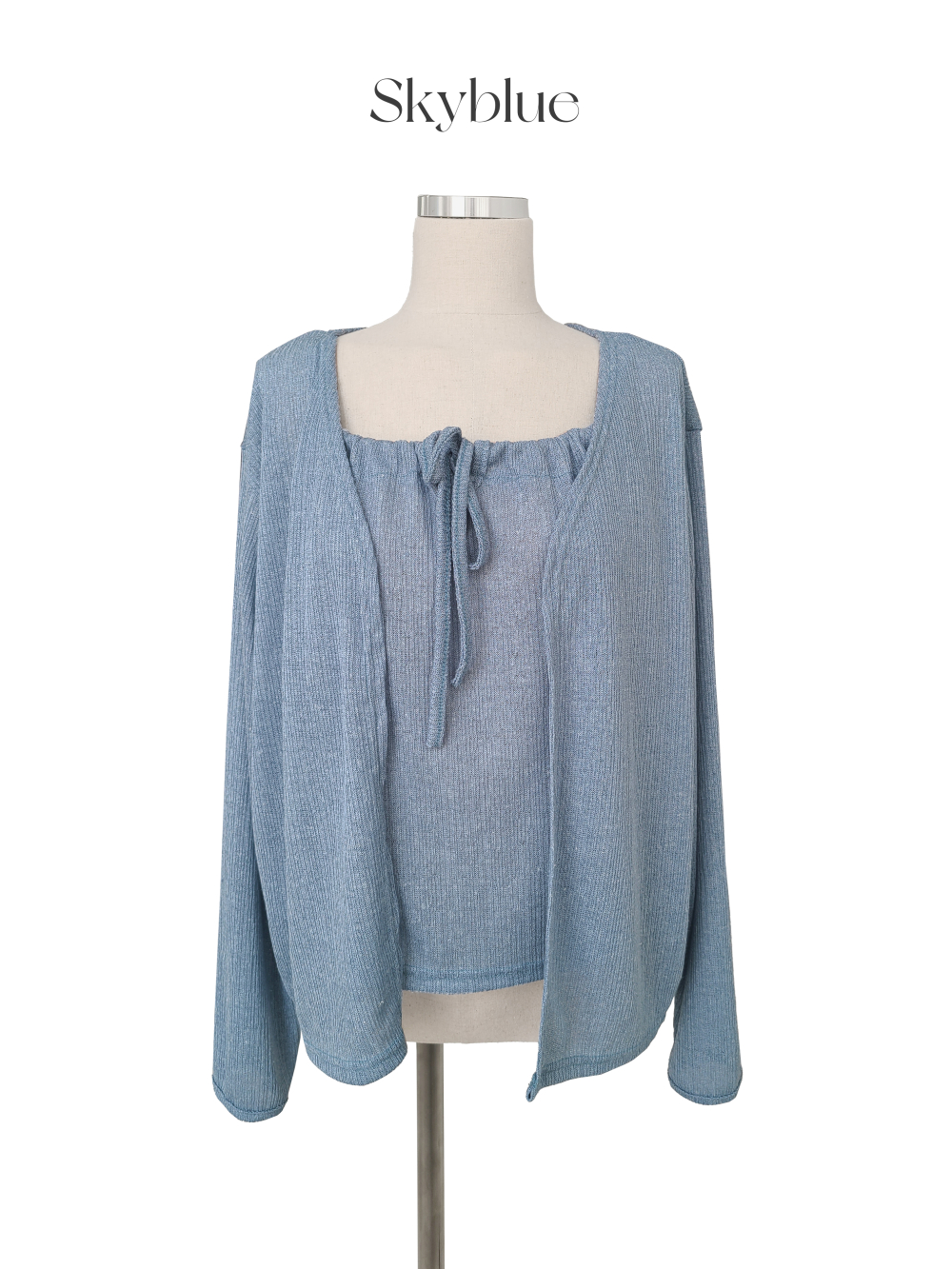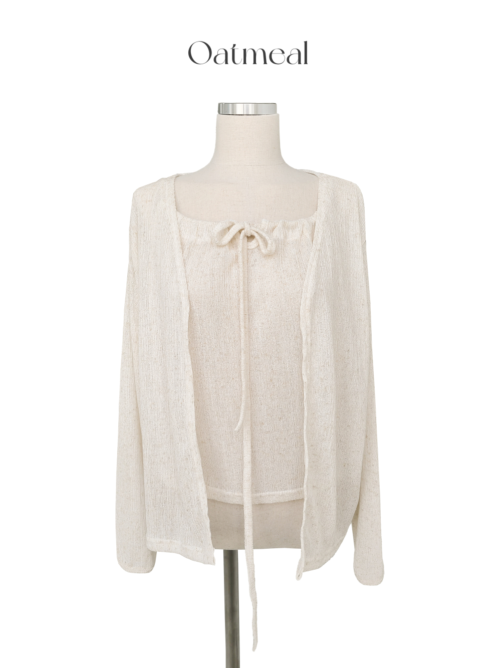 Slimリネンノースリーブキャミソールカーディガンセット