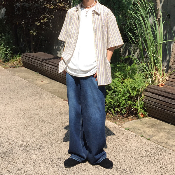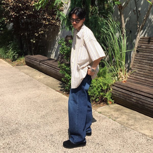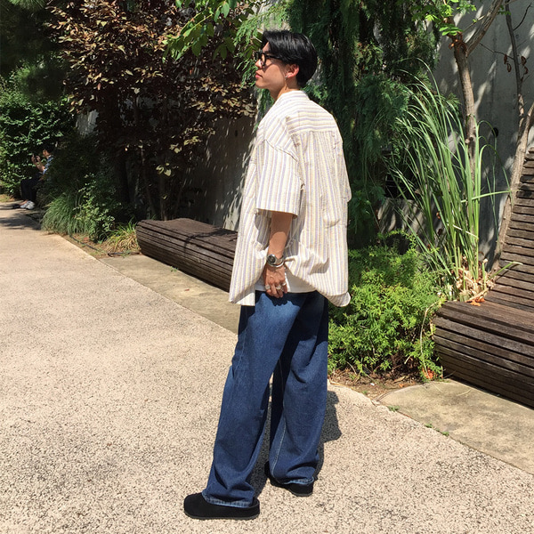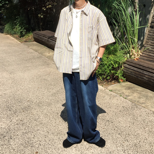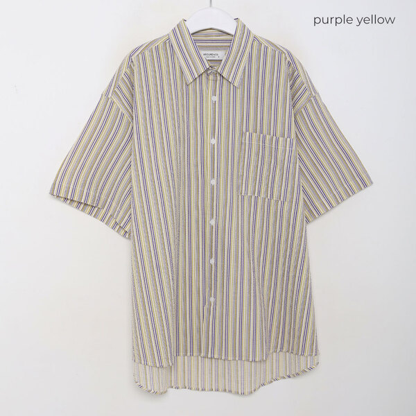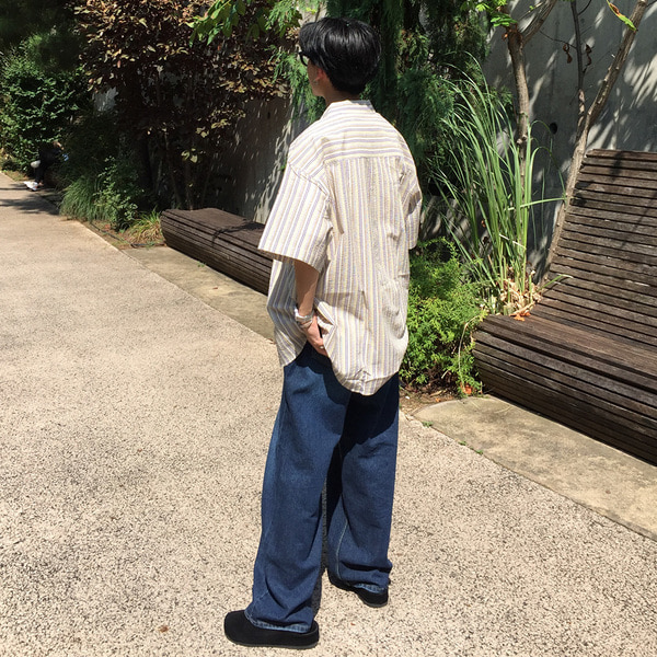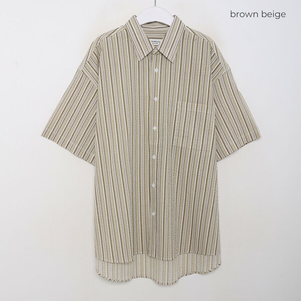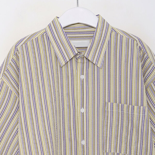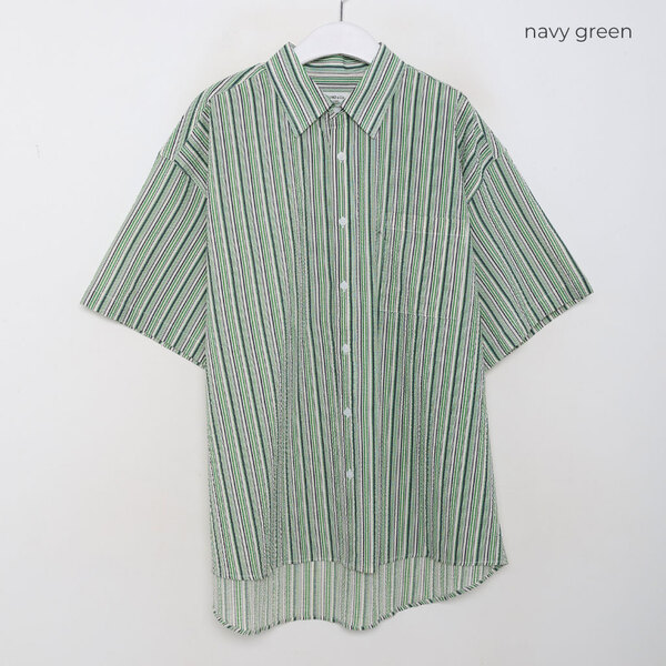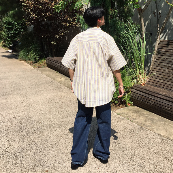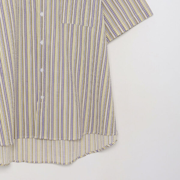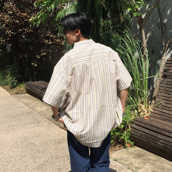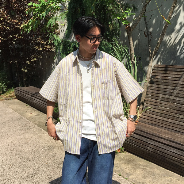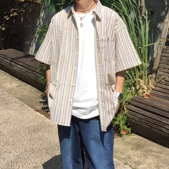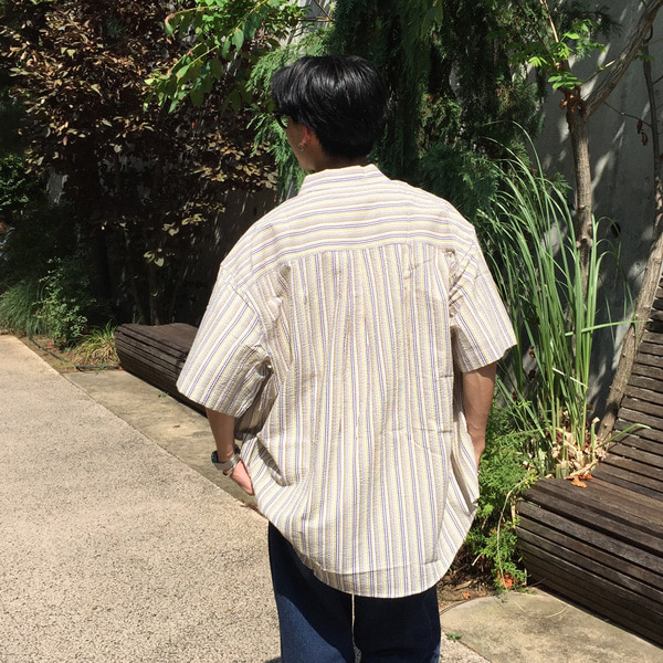 シアサッカーオーバーフィットストライプ半袖シャツ