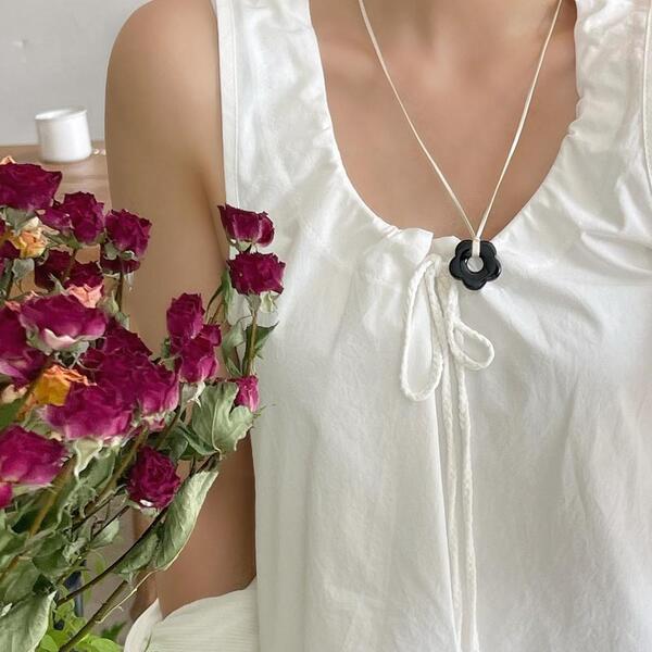 花柄アクリルストリングロングネックレス(2color)