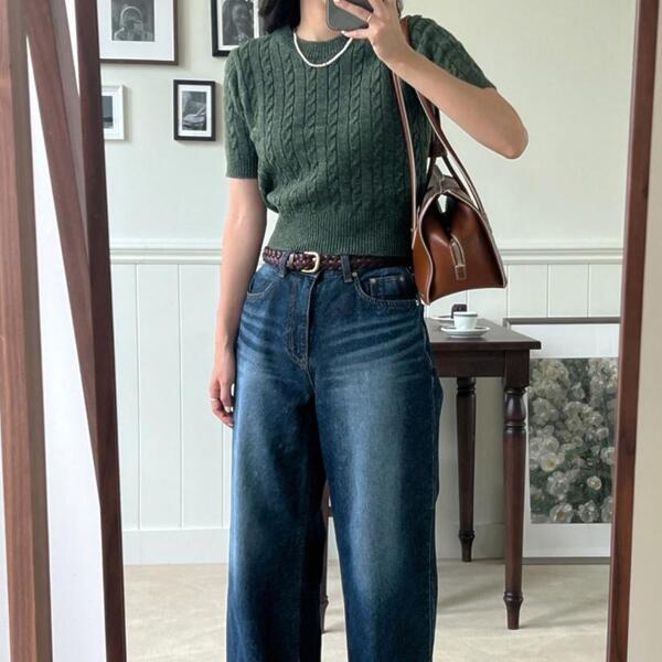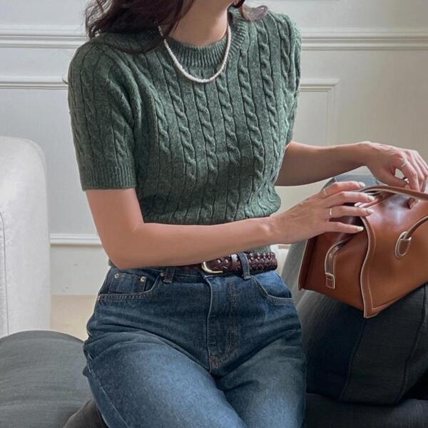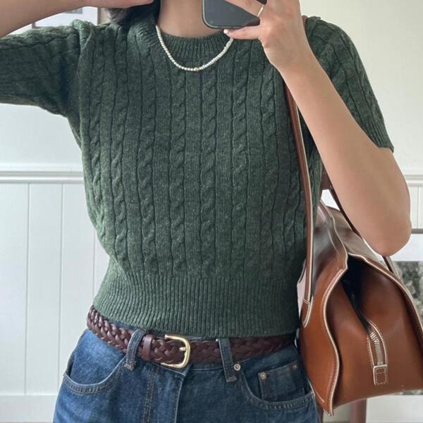 [5color] フィッシャーマンクロップドニット