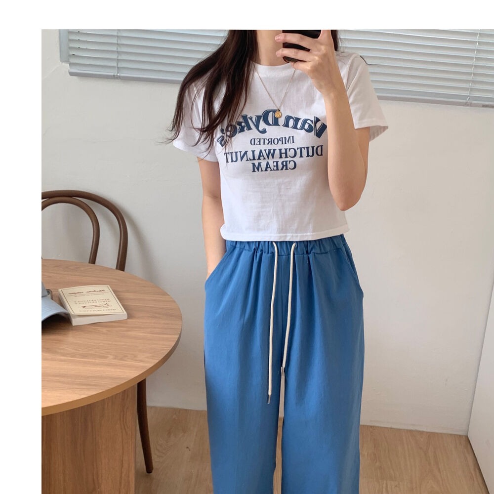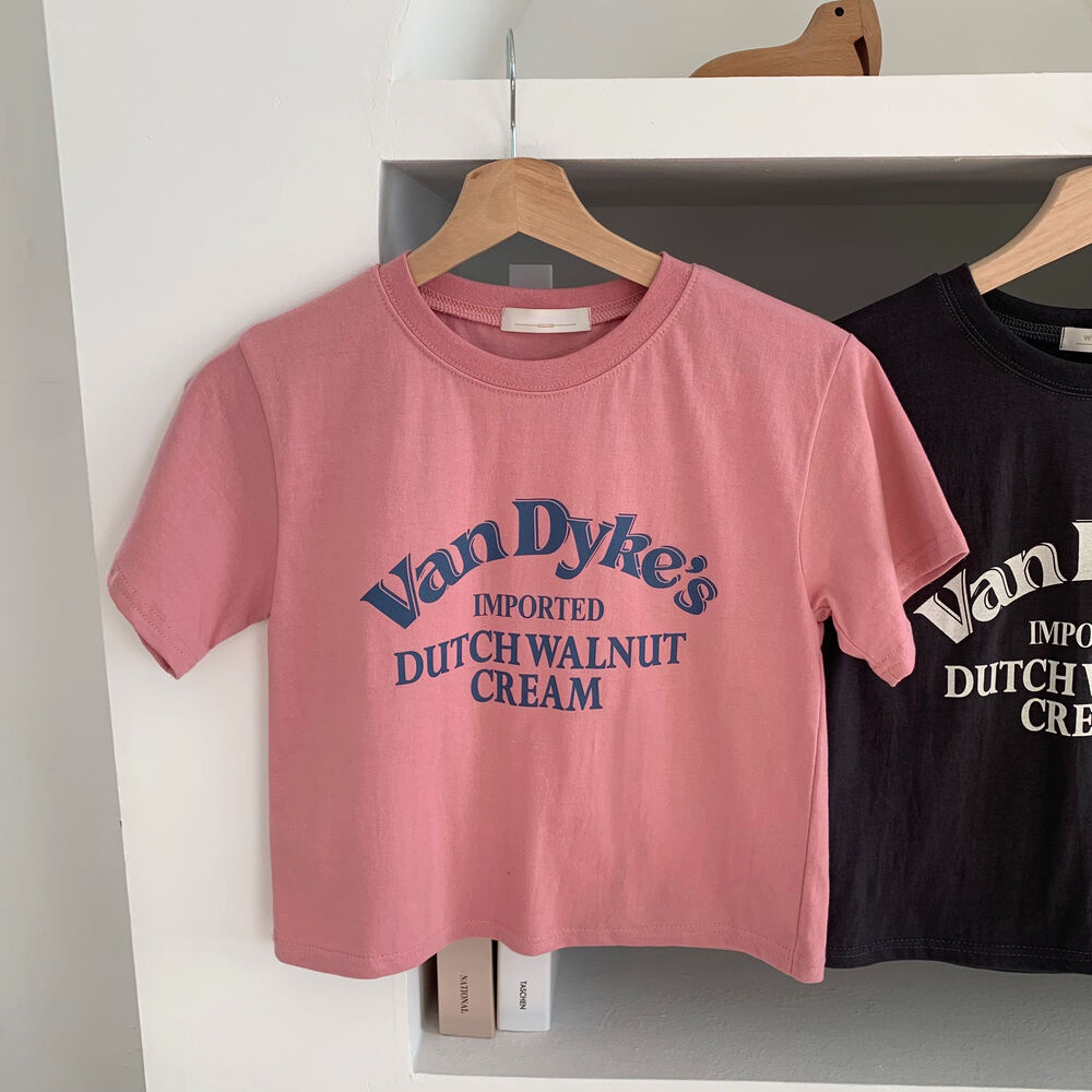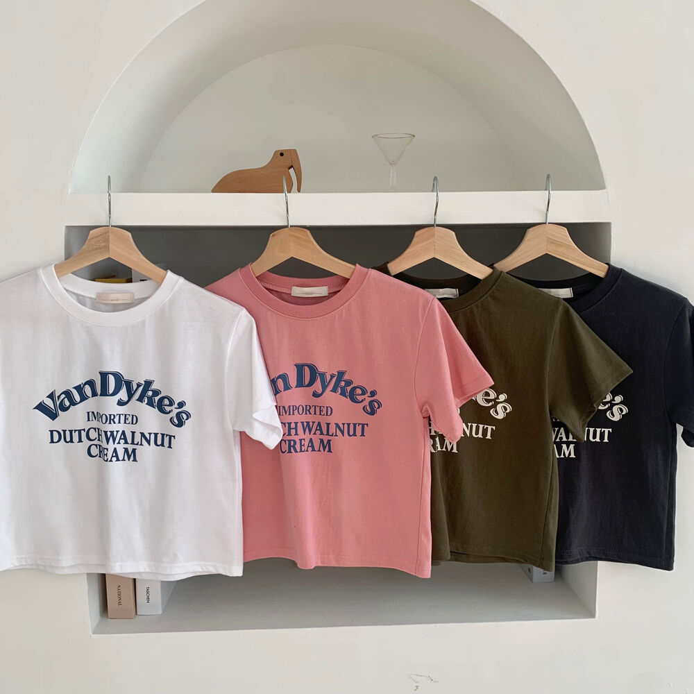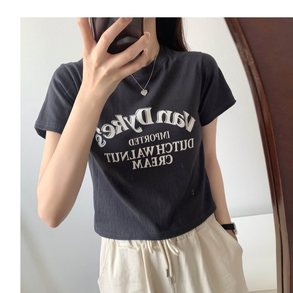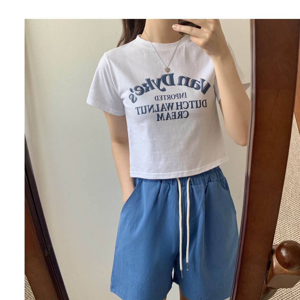 Y2Kクロップドレタリングクリーム半袖Tシャツ