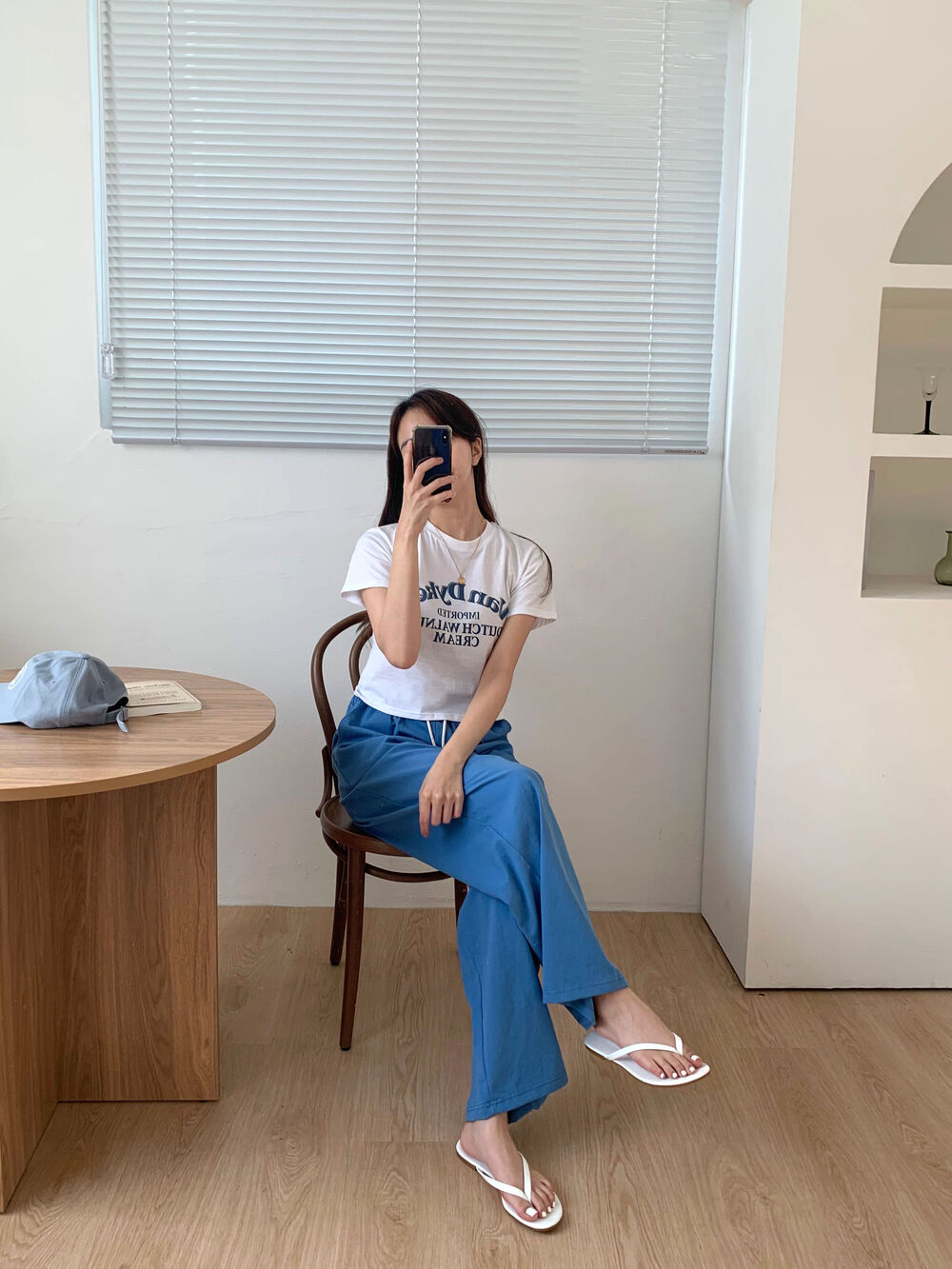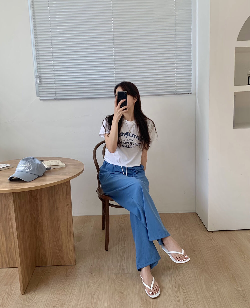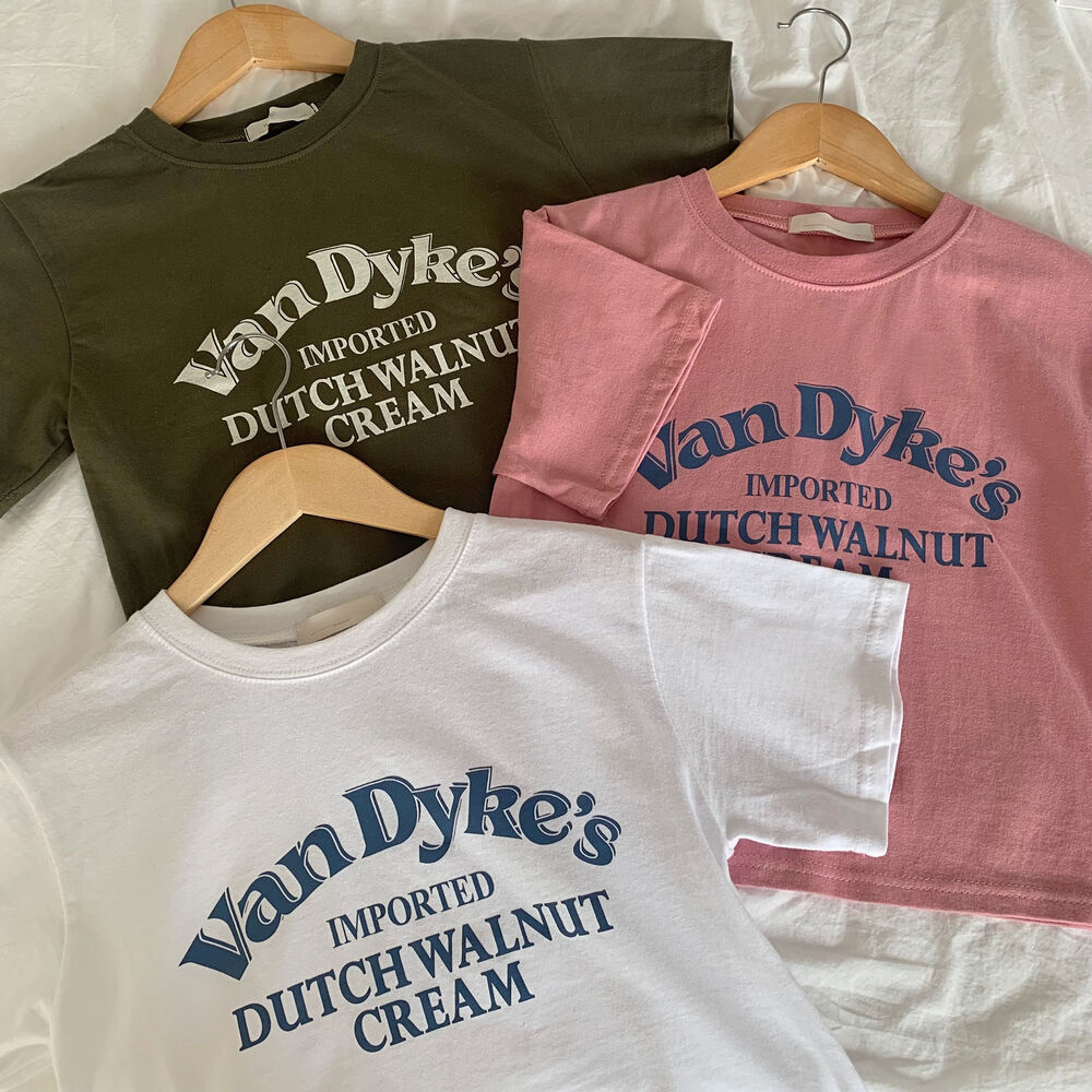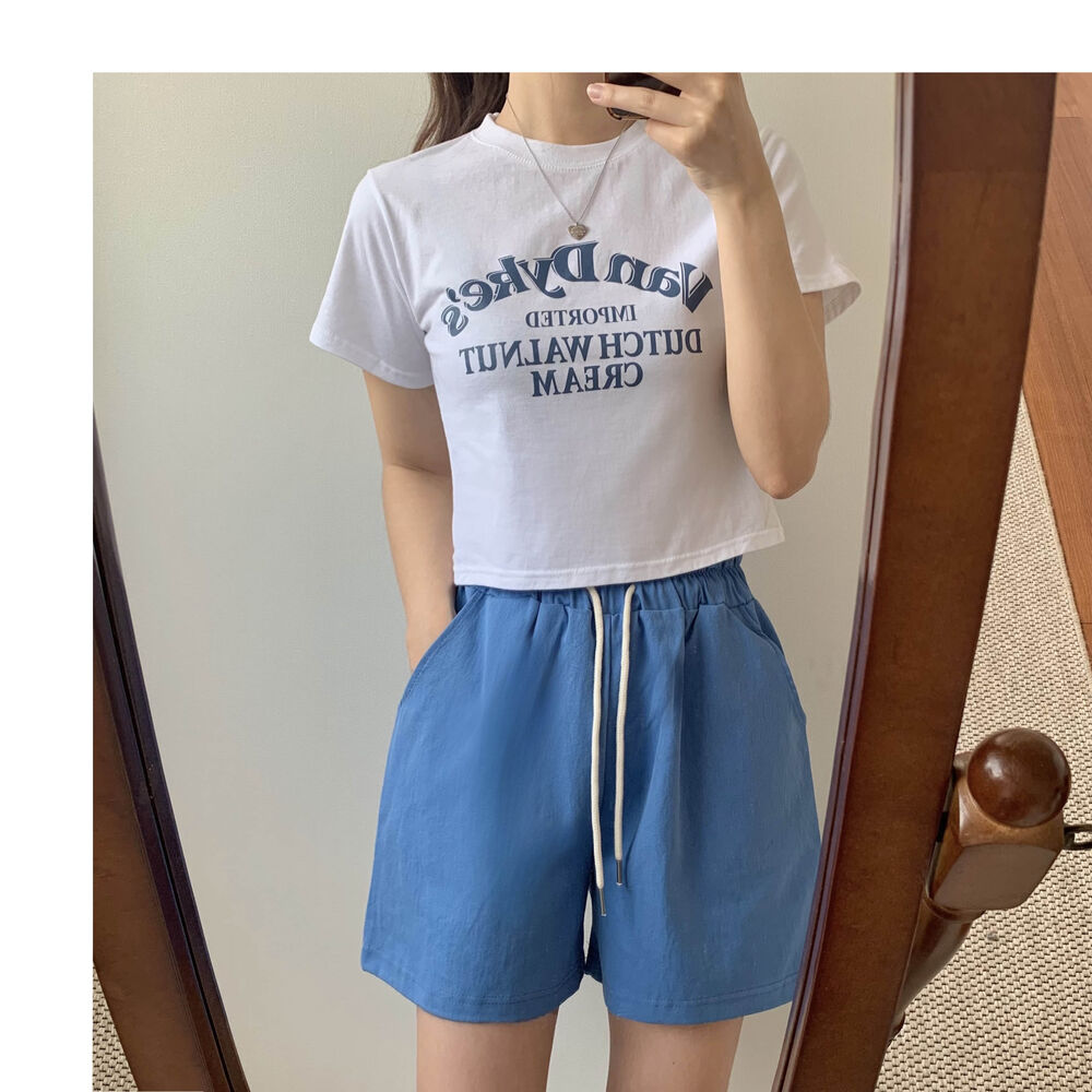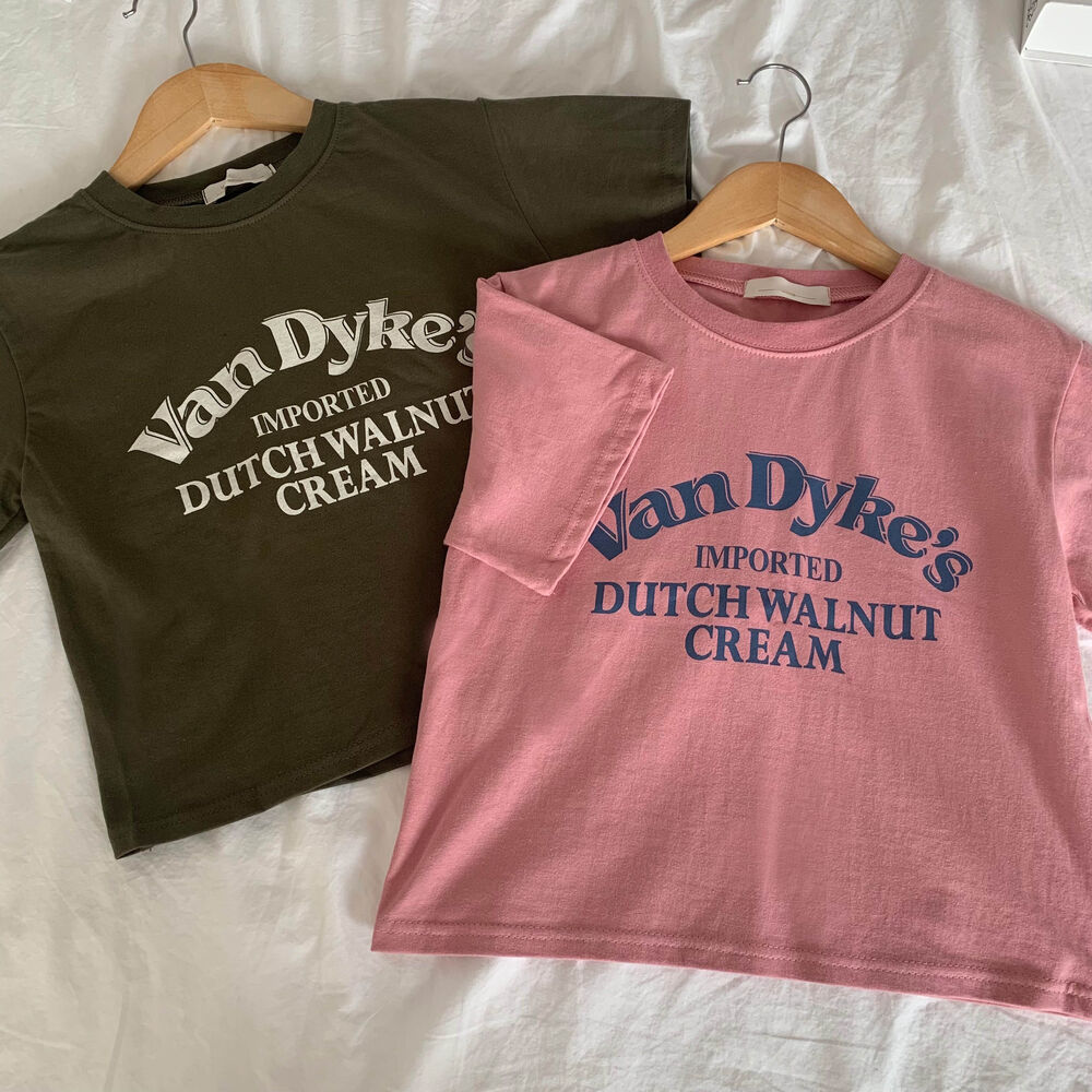 Y2Kクロップドレタリングクリーム半袖Tシャツ