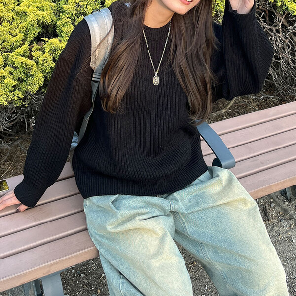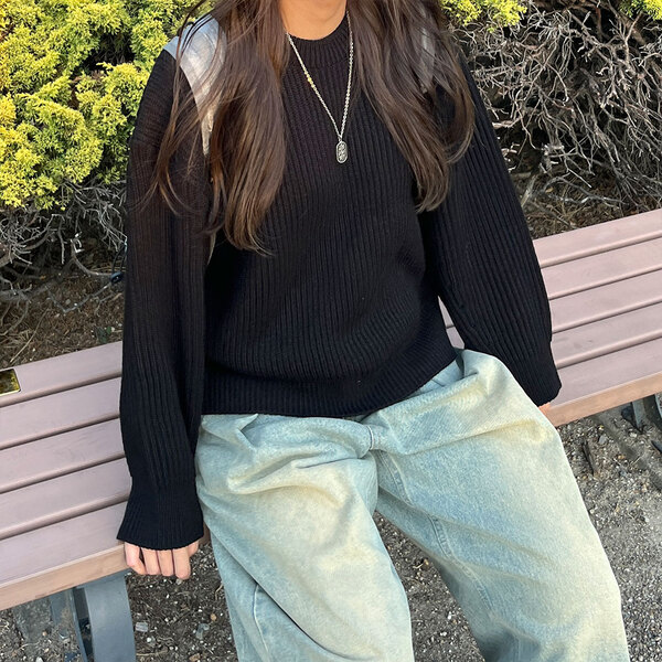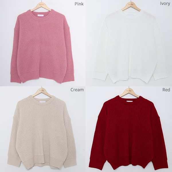 ベーシックカラーラウンドニット