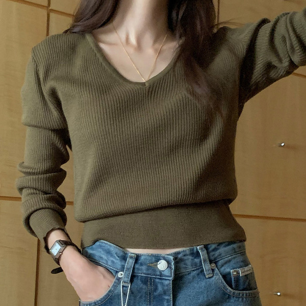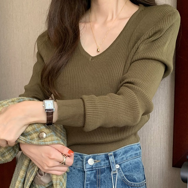 RosyリブⅤネックニット