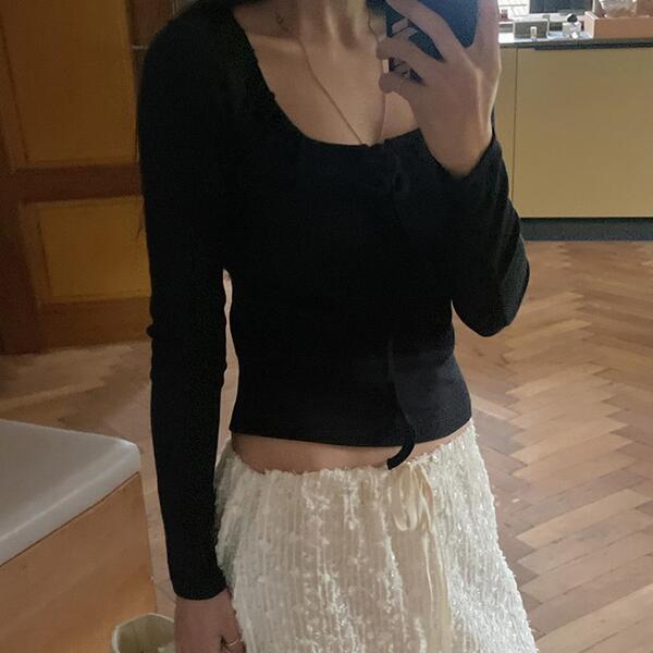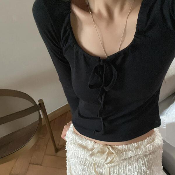 [Dearest] LennaリボンシャーリングTシャツ (ブラック)