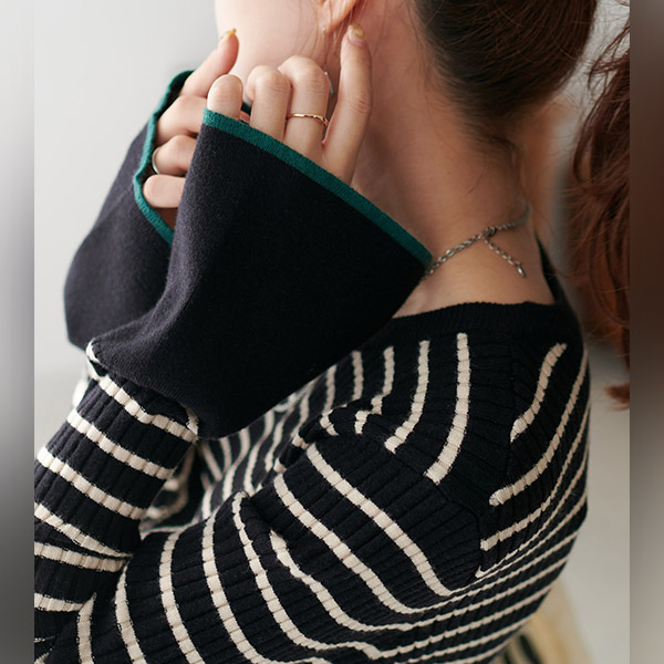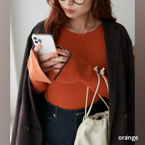リブ袖フレアパイピングプルオーバー