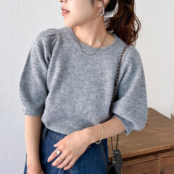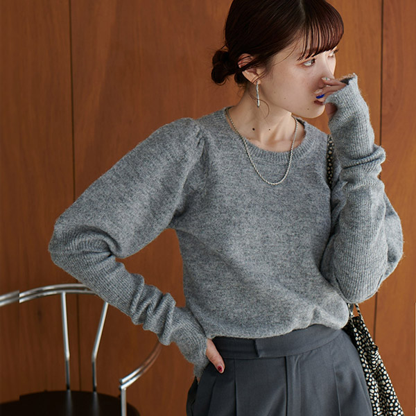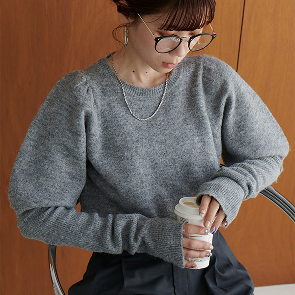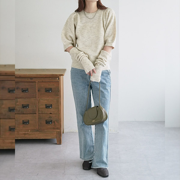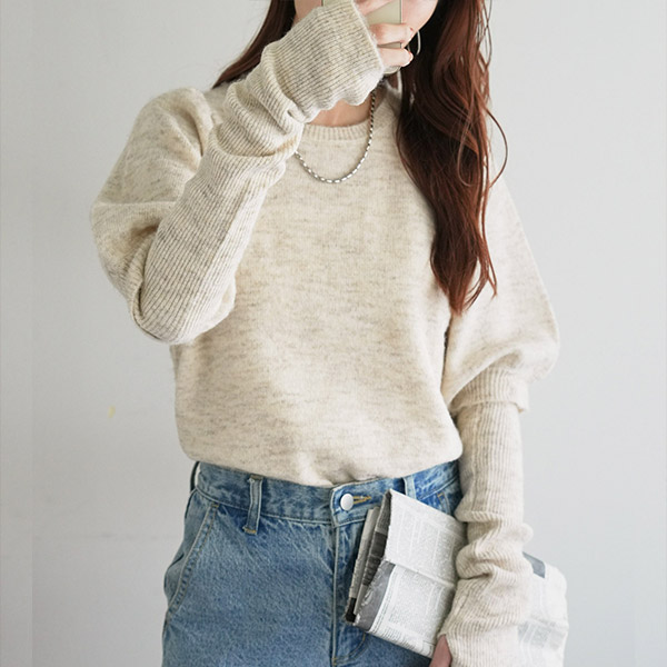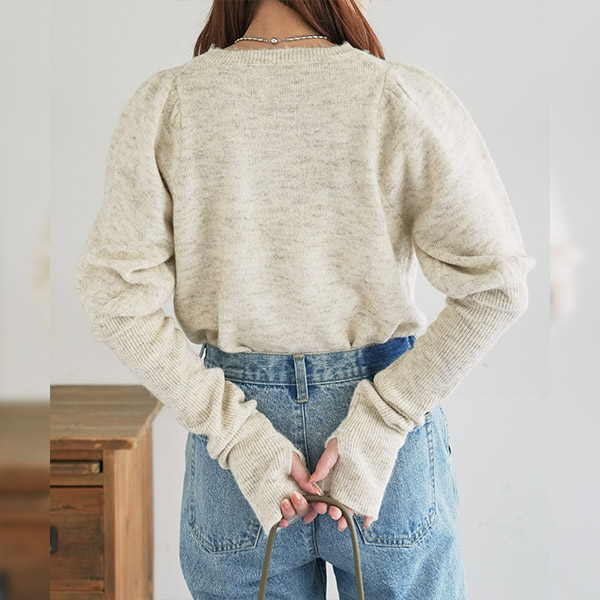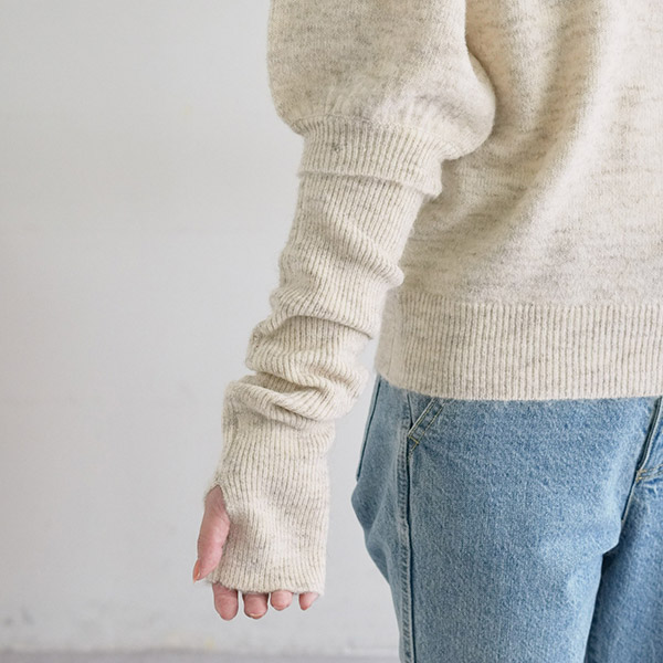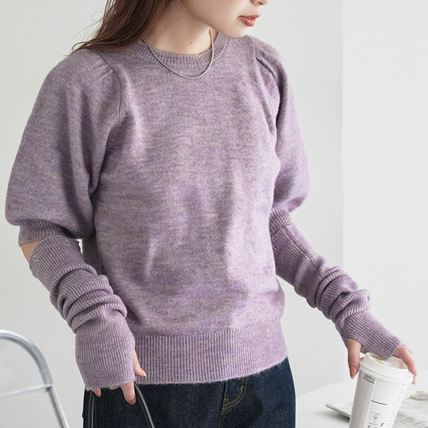 アームウォーマー付き肩ギャザープルオーバー