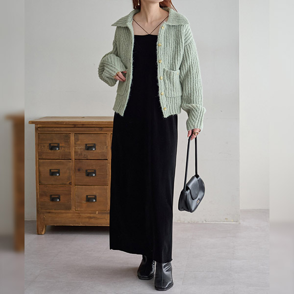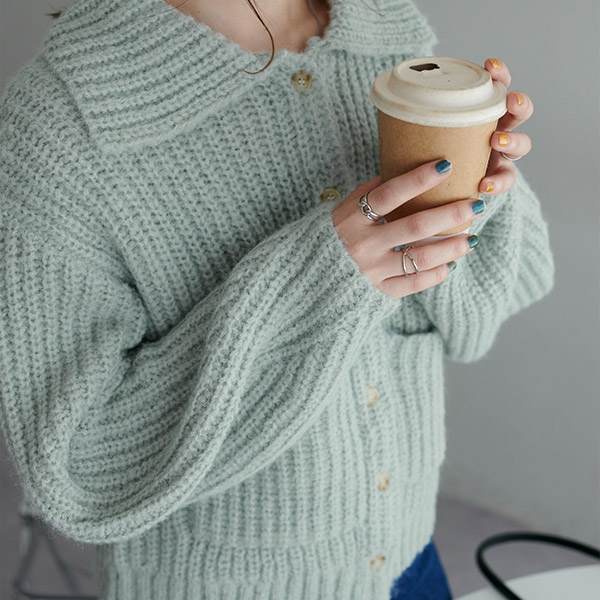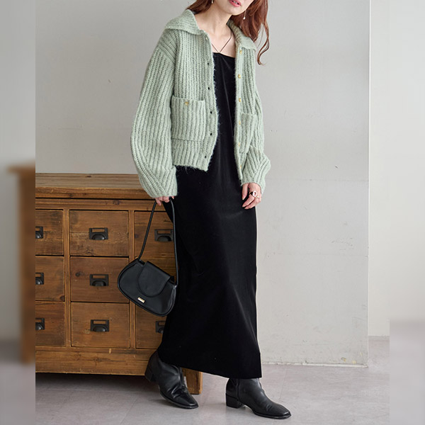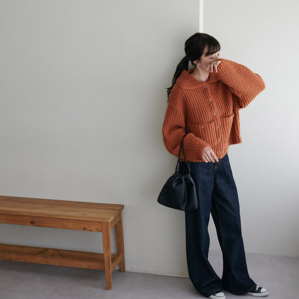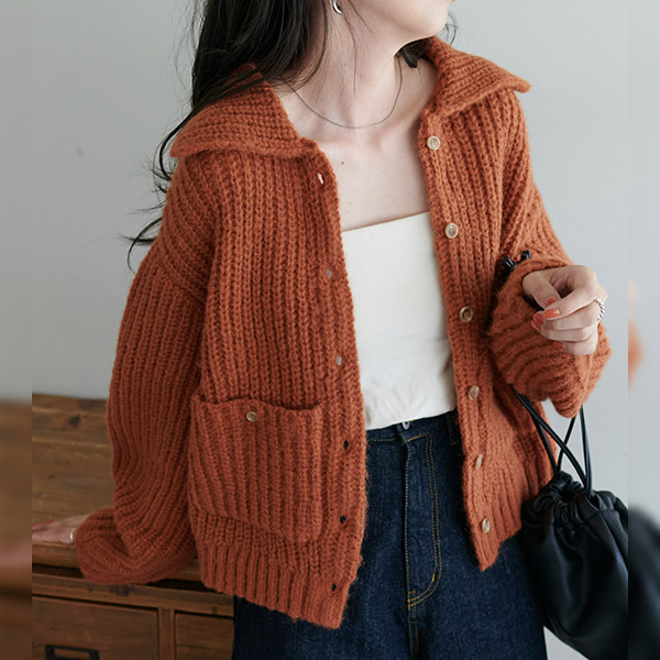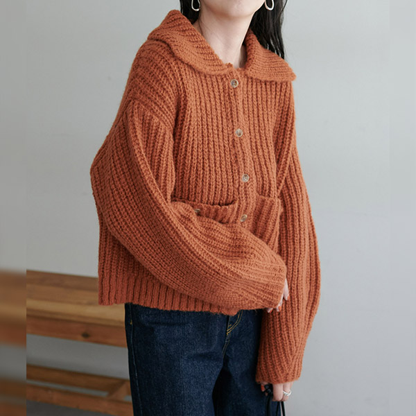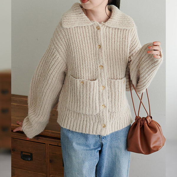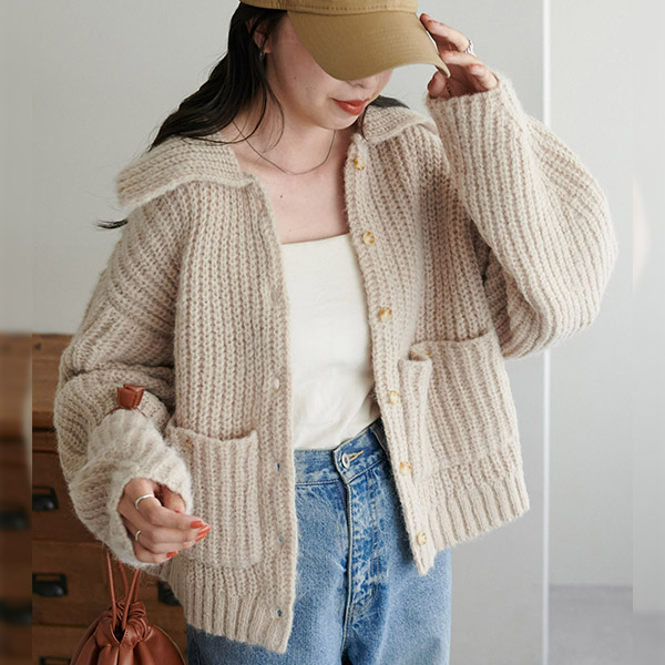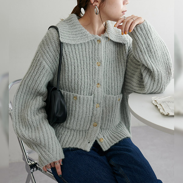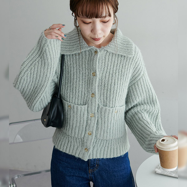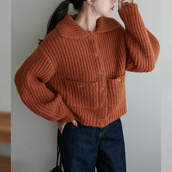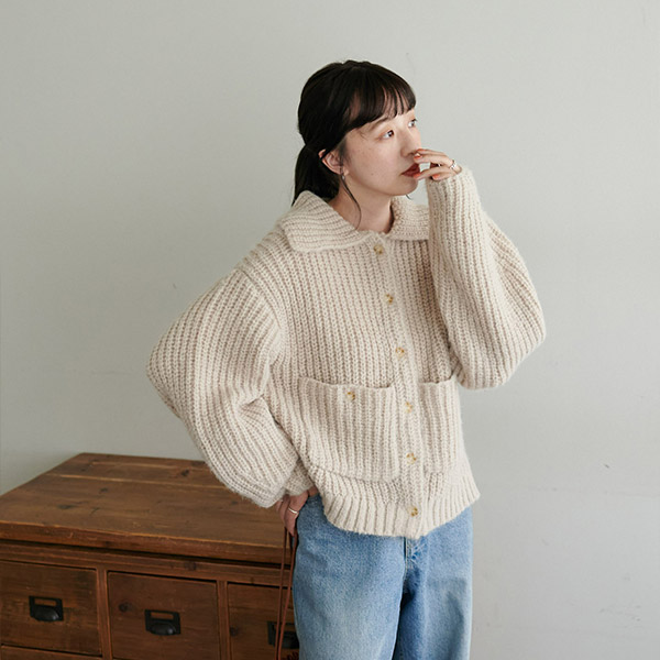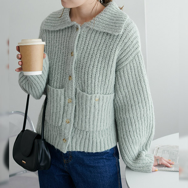 衿付きポケットカーディガン
