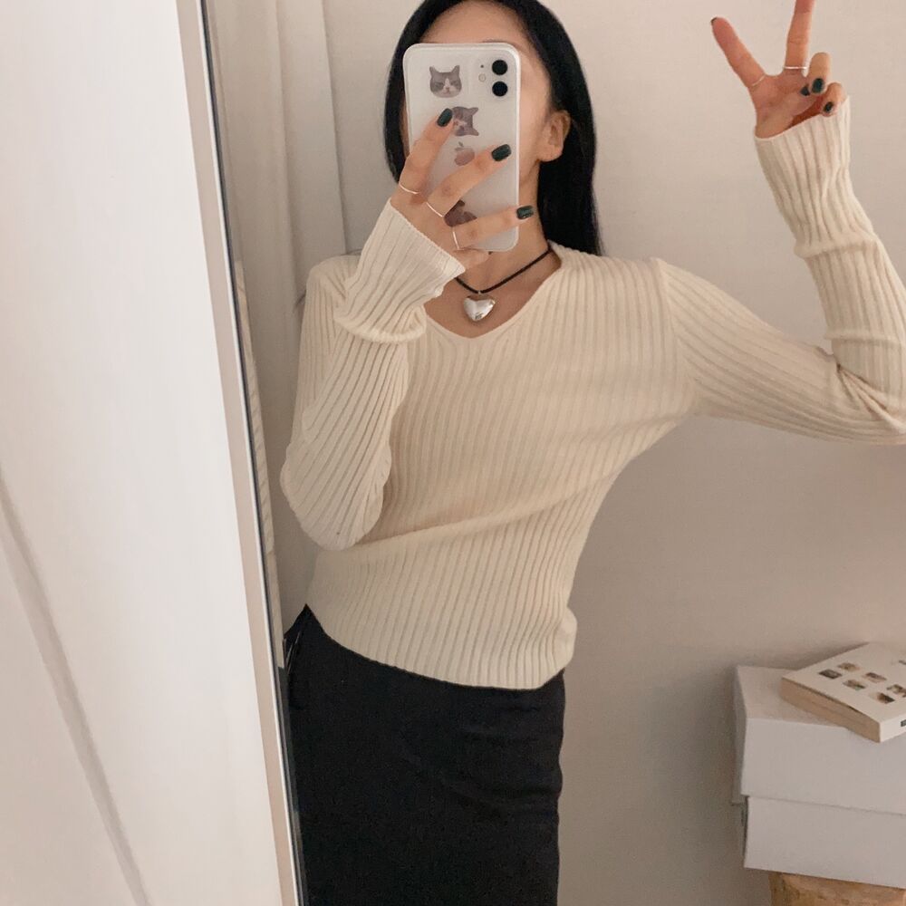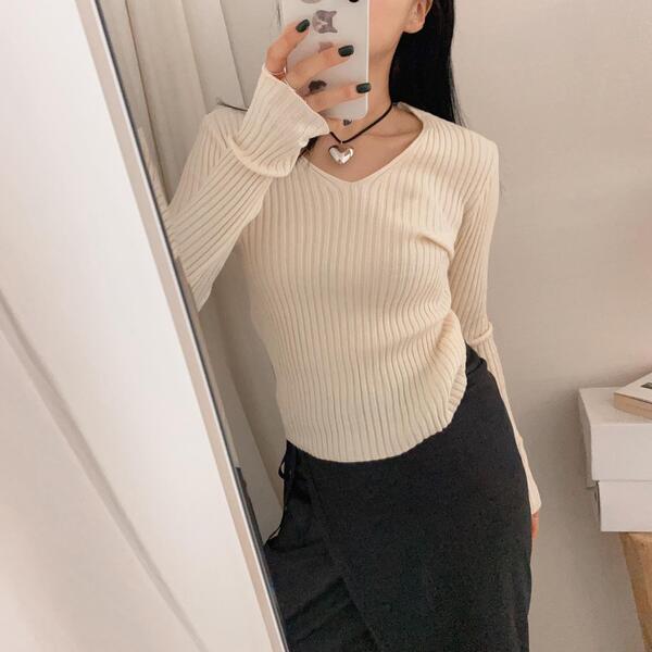 Vネックニット
