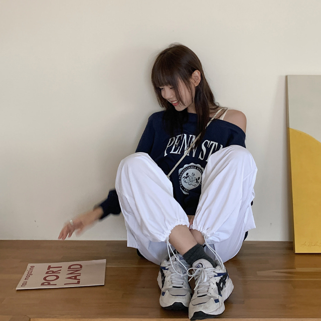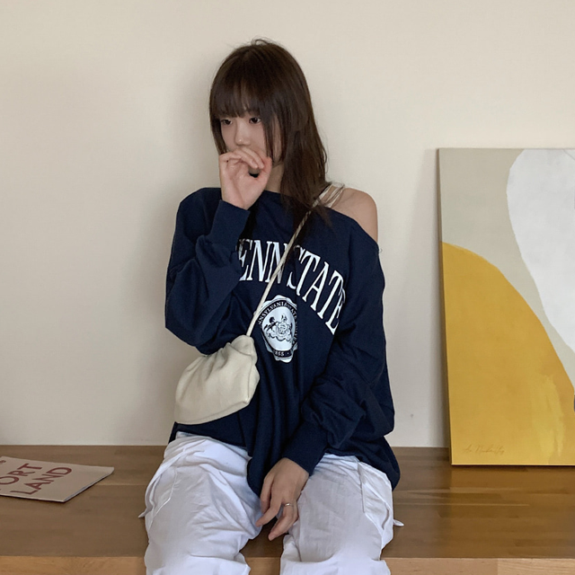 レタリングオフショルダー長袖Tシャツ