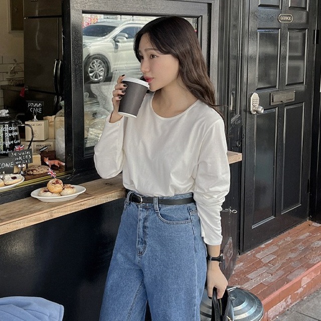 ラウンドネックデザインでデイリーに楽しめる長袖Tシャツです。ベーシックでシンプルなデザインで、流行りに関係なく単独orインナーとして着回しできます◎程よく余裕のあるシルエットで体型カバー&華奢なシルエットを演出し、バインダーネック& 二重生地で生地のヨレも防止✨モダール混紡生地で伸縮性に優れているので、一日中ラクに着用できます(^^♪デイリーな全4カラー展開でご用意しました:)