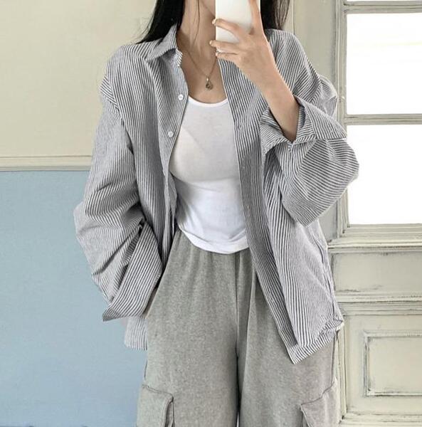 ストライプでぜい肉カバーに良く、ナチュラルなショルダーラインでか弱く着られます!