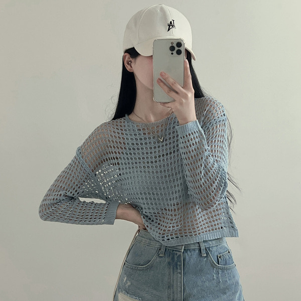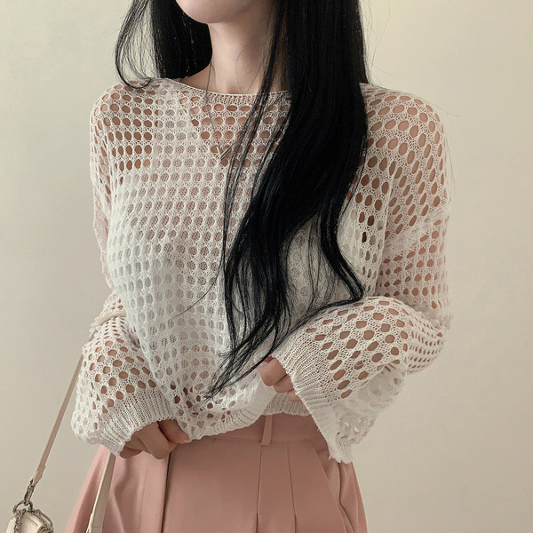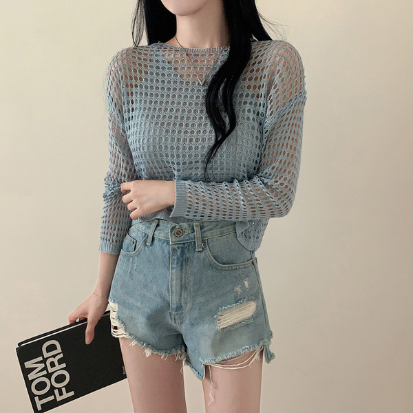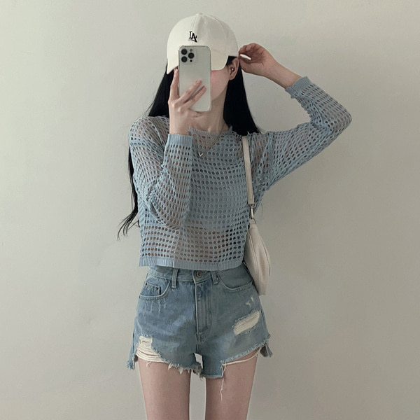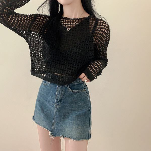 シースルーパンチング長袖Tシャツノースリーブ2ピースセット