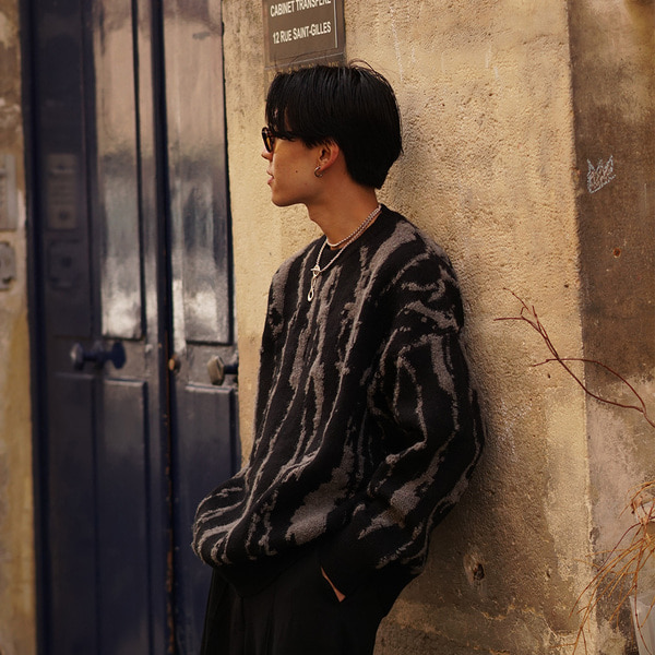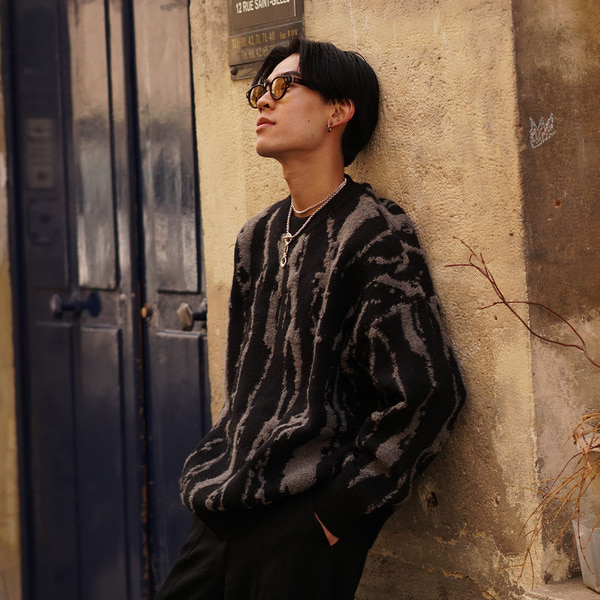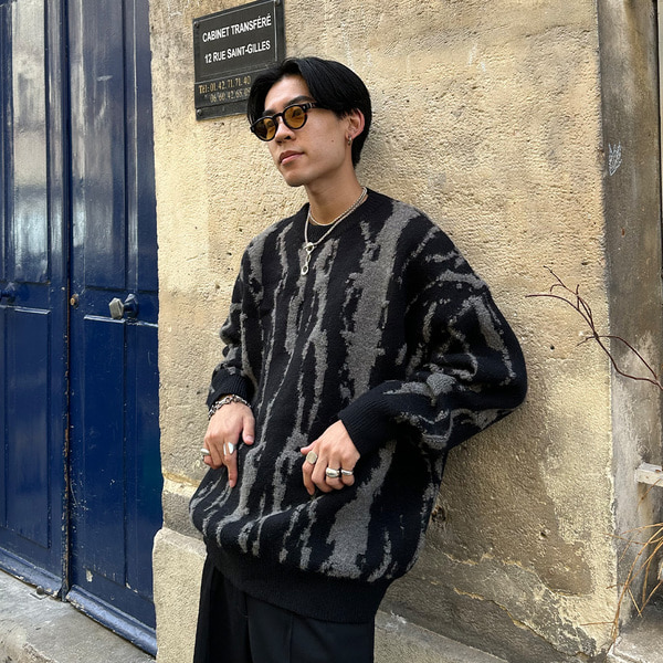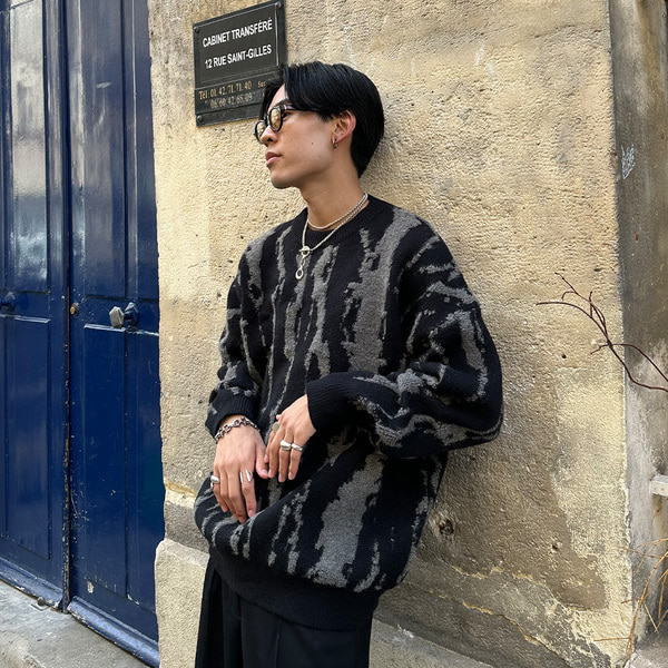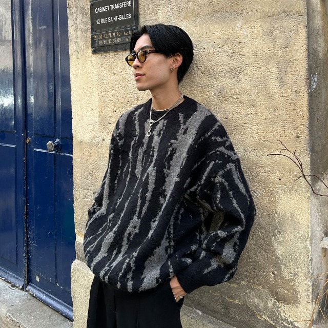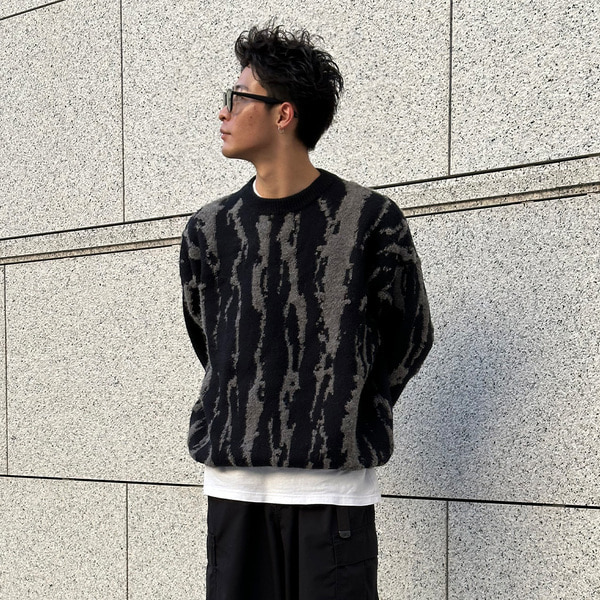ユニークパターンラウンドニット