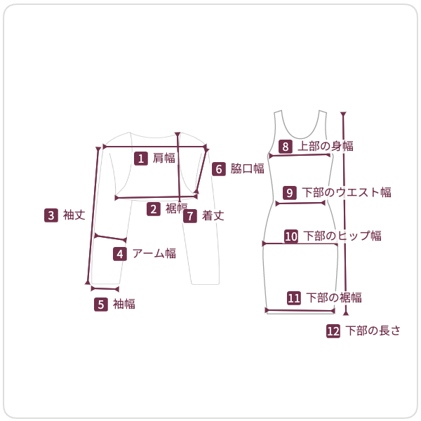 - 上記のサイズ情報は「平置きして採寸した長さ」です。