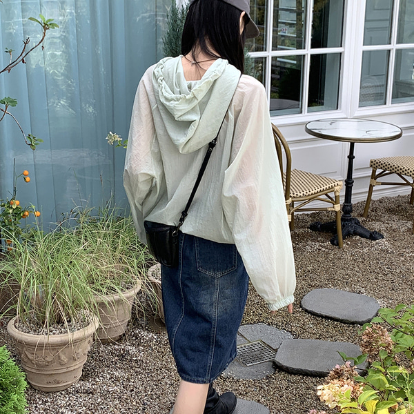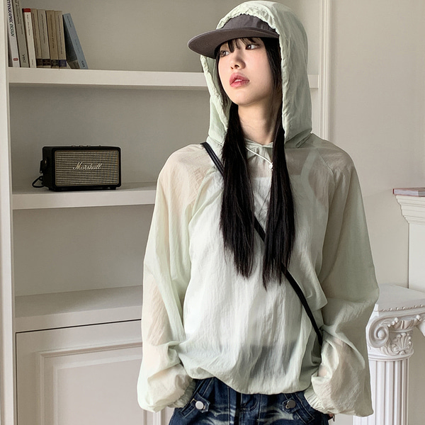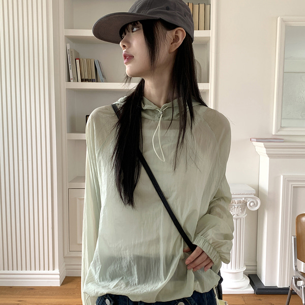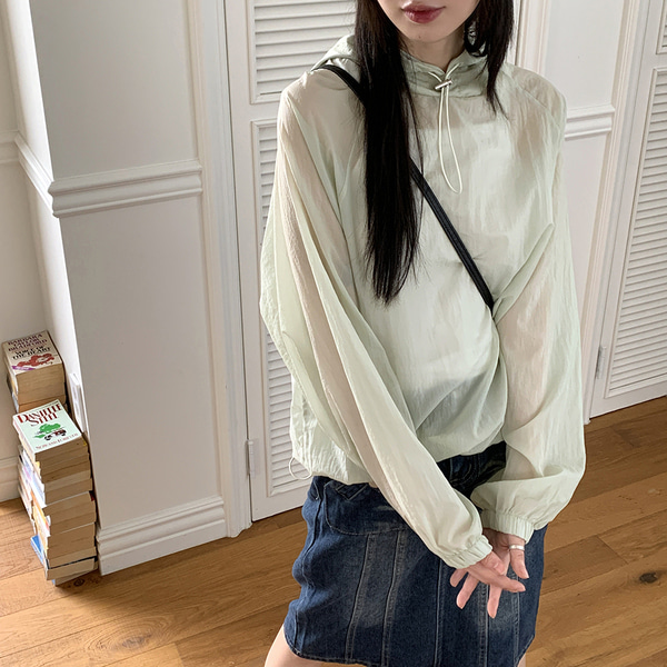 ナイロンマウンテンパーカーストリング長袖フード付きTシャツ