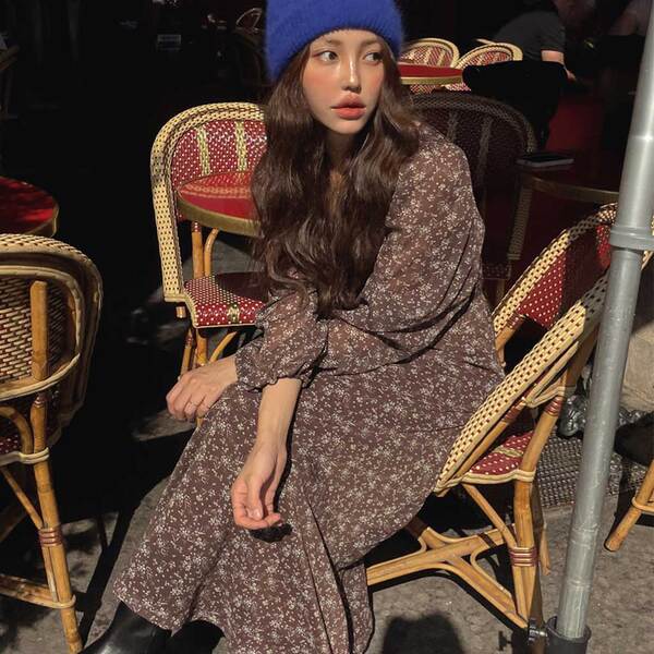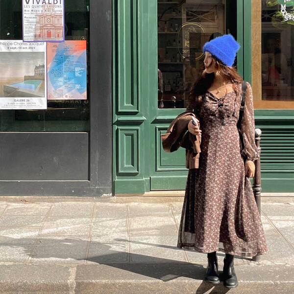 Blancerフラワー花柄ロングワンピース
