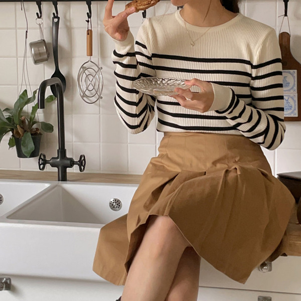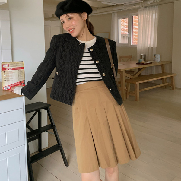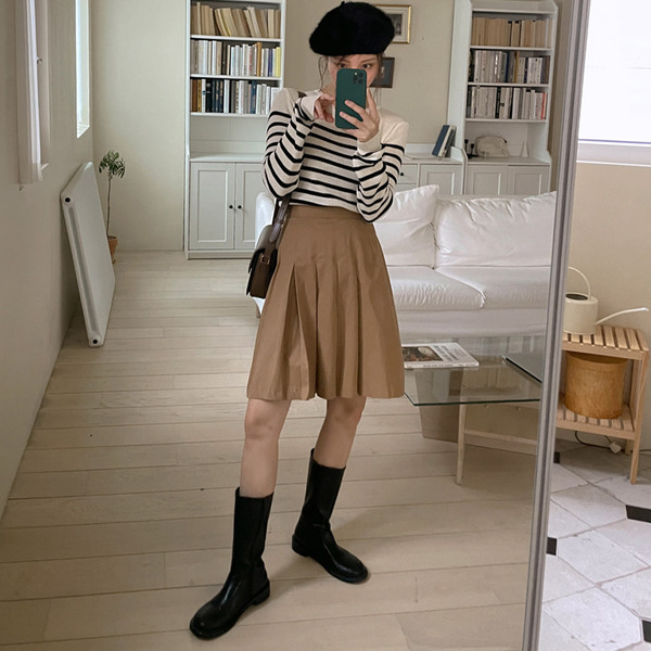 Efranアンバランスプリーツミディスカート