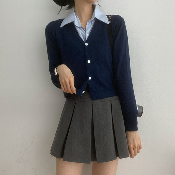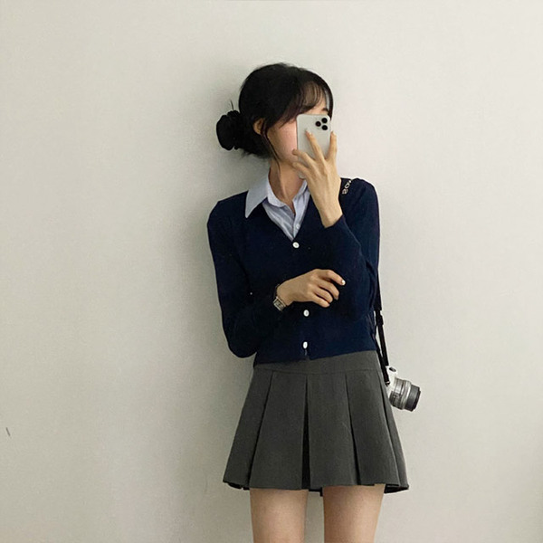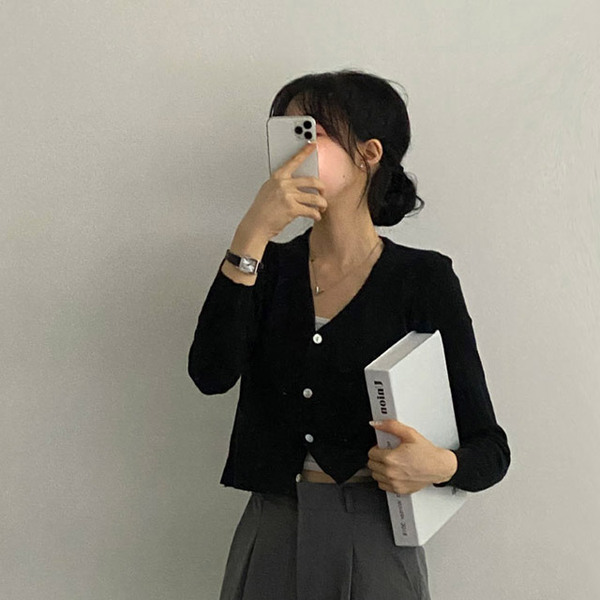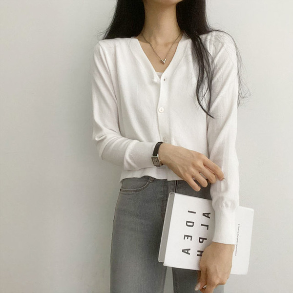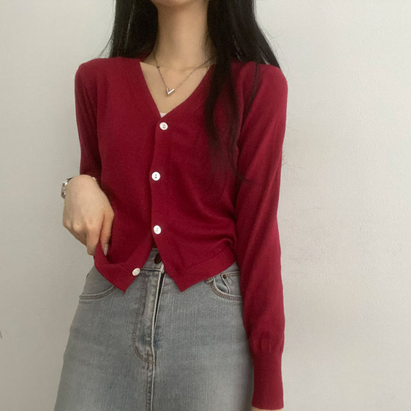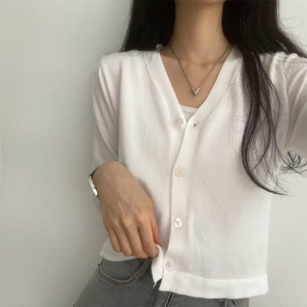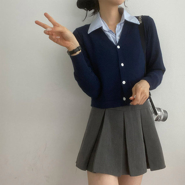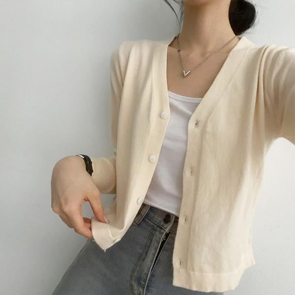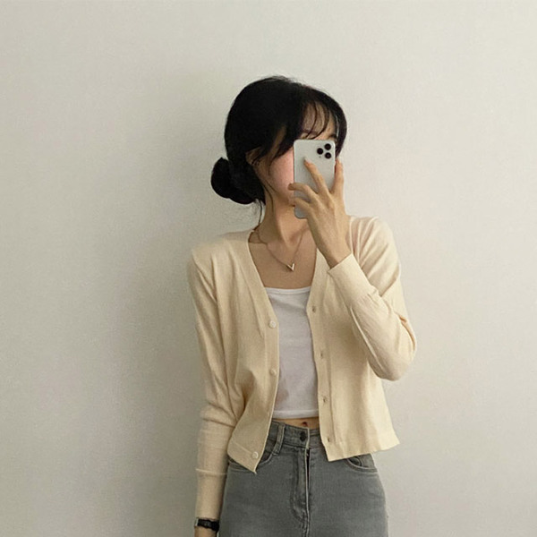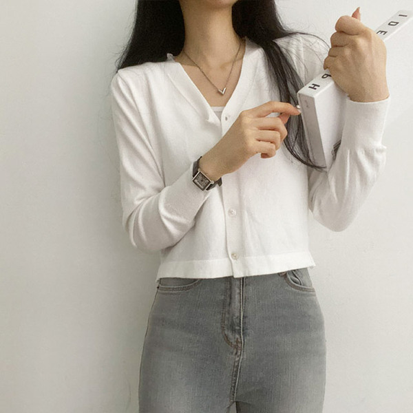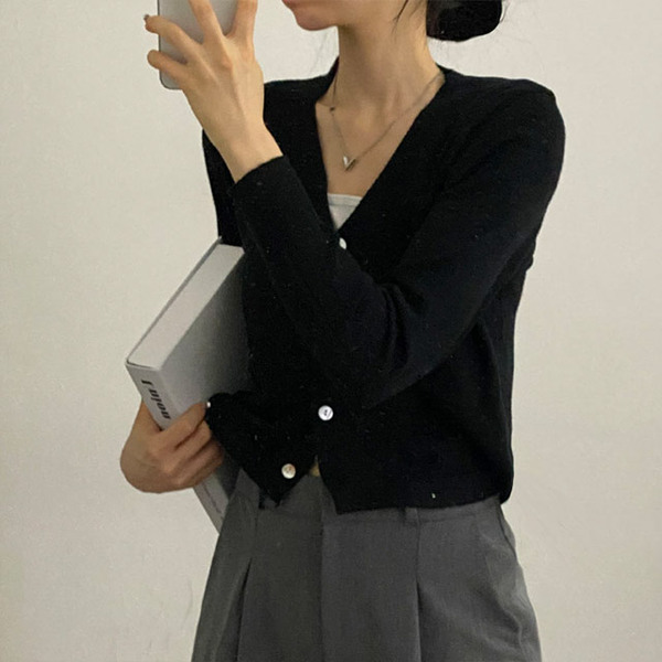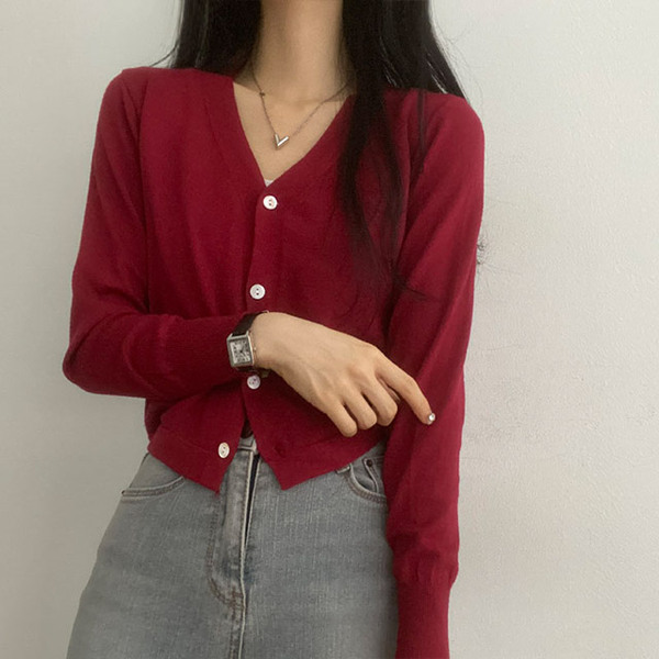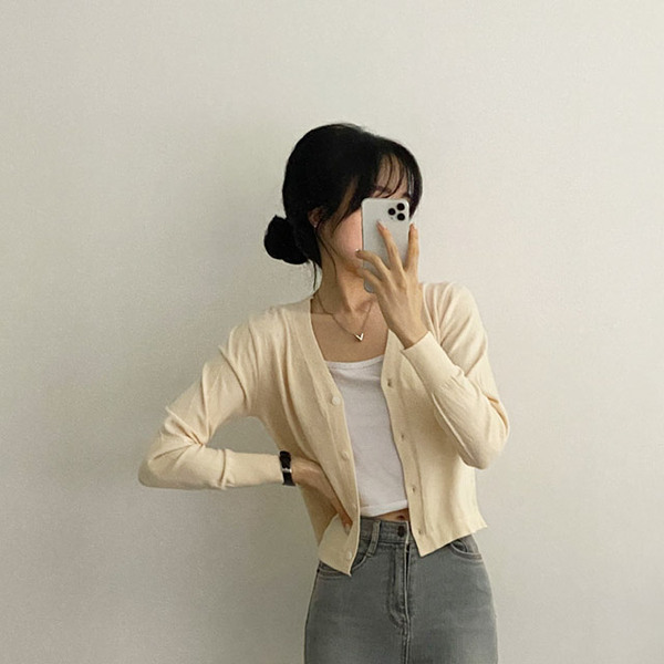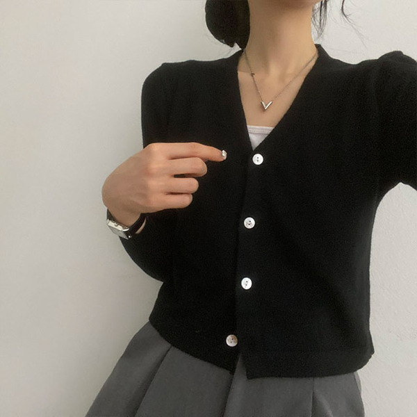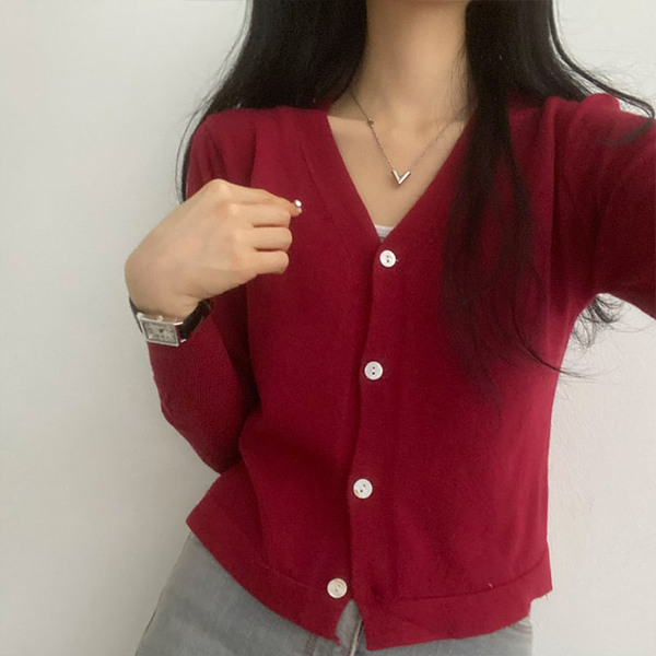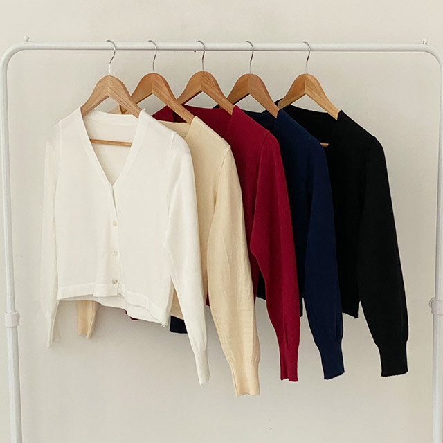 [5color]デイリーVネッククロップドボタンニットカーディガン