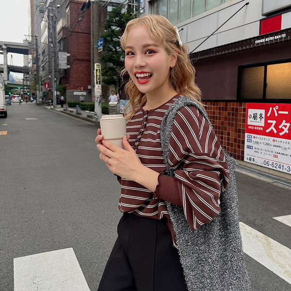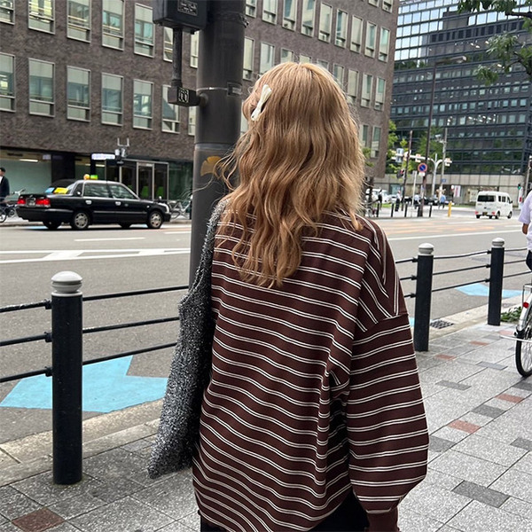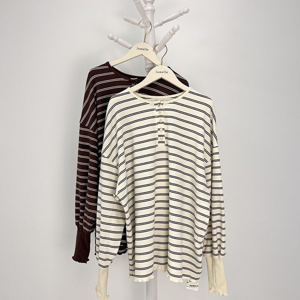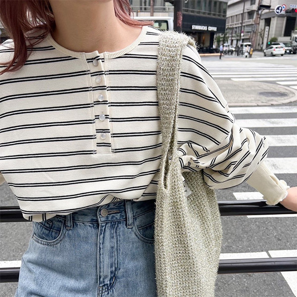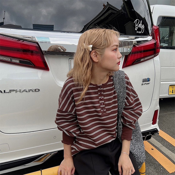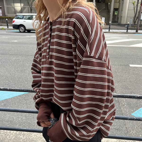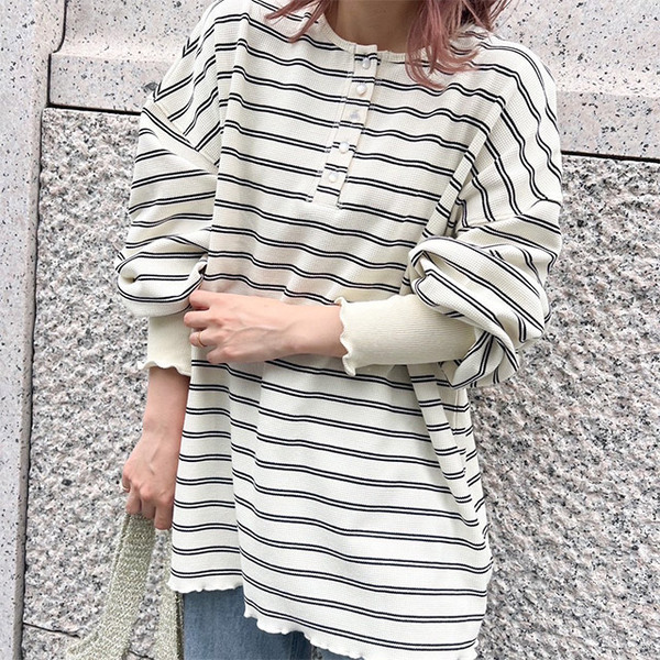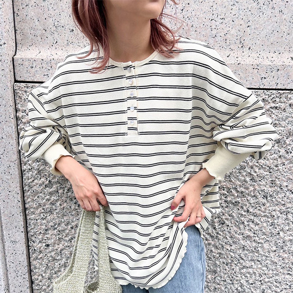 ワッフル素材のボーダーロンT