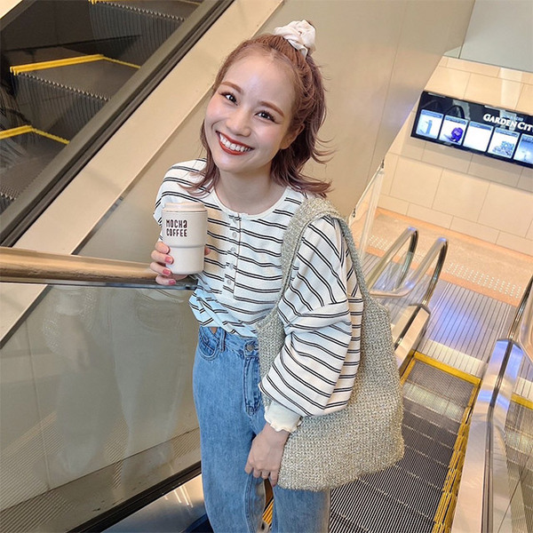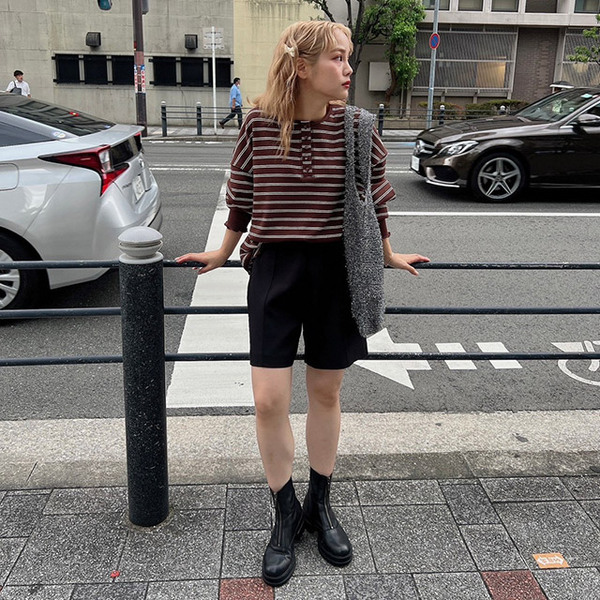 首元には丸みのあるボタンがポイント。