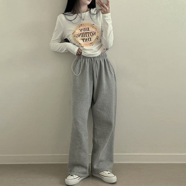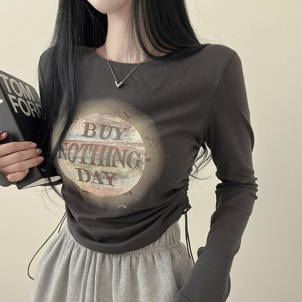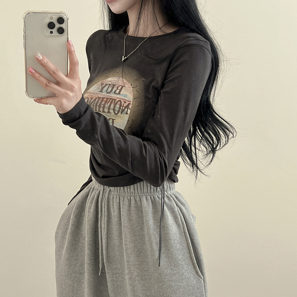 プリントラウンドネックストリング長袖Tシャツ