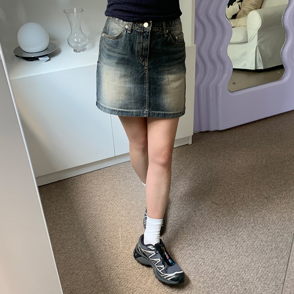 ヴィンテージウォッシュデニムロースカート